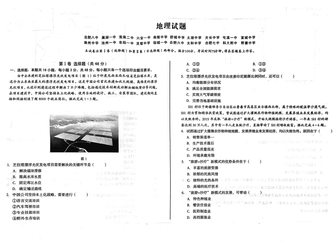 安徽省A10联盟2025届高三下学期开年考地理考试已于近日开考,为方便考生考后及时查看考试情况,查漏补缺、弥补不足,本文整理了试题答案解析相关信息!