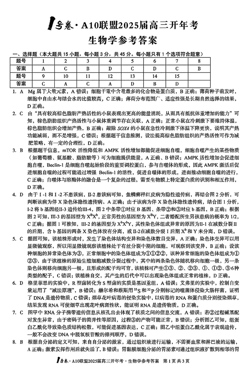 安徽省A10联盟2025届高三下学期开年考生物考试已于近日开考,为方便考生考后及时查看考试情况,查漏补缺、弥补不足,本文整理了试题答案解析相关信息!