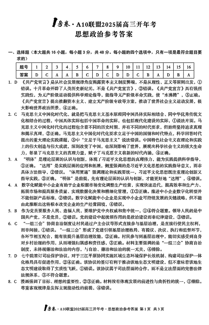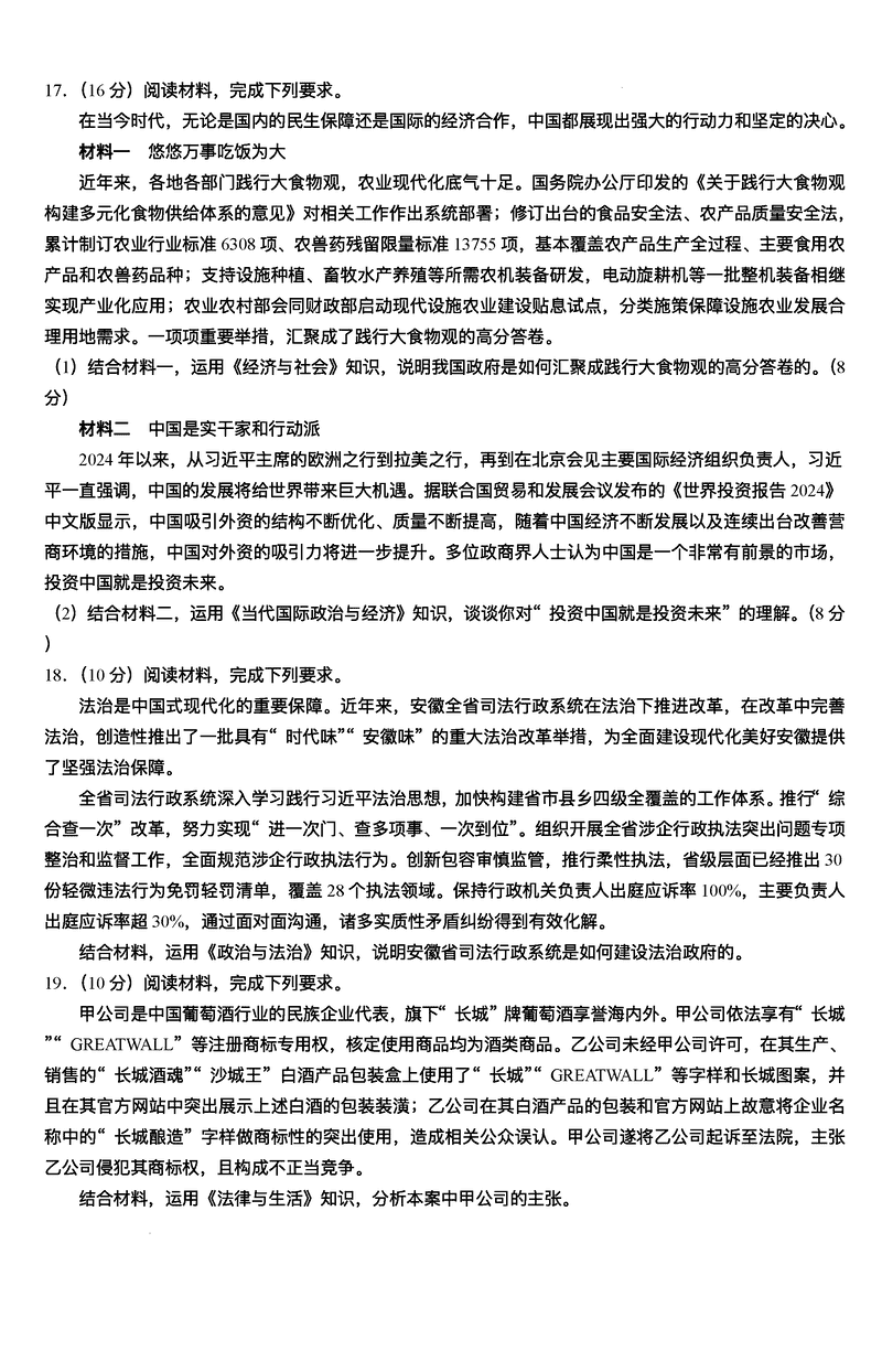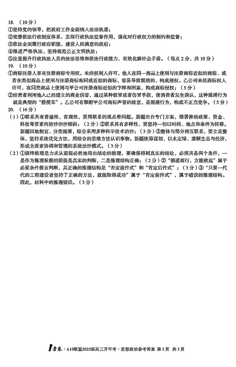 安徽省A10联盟2025届高三下学期开年考政治考试已于近日开考,为方便考生考后及时查看考试情况,查漏补缺、弥补不足,本文整理了试题答案解析相关信息!