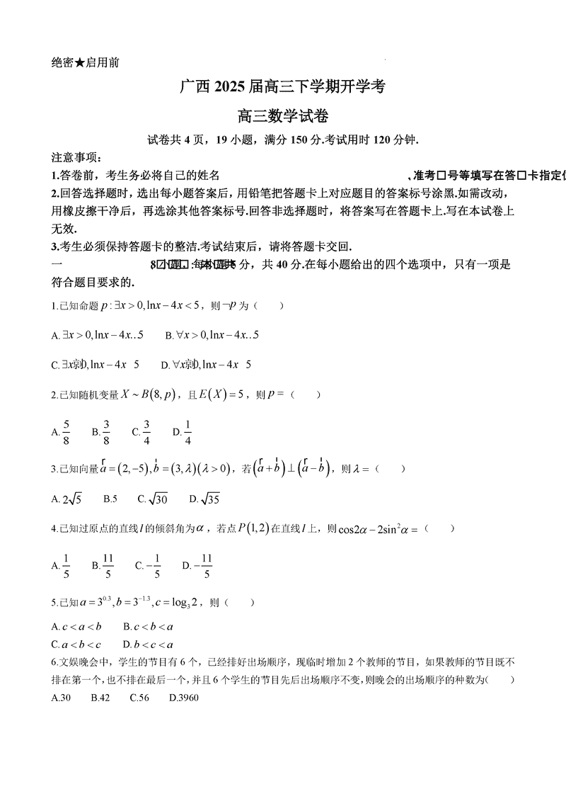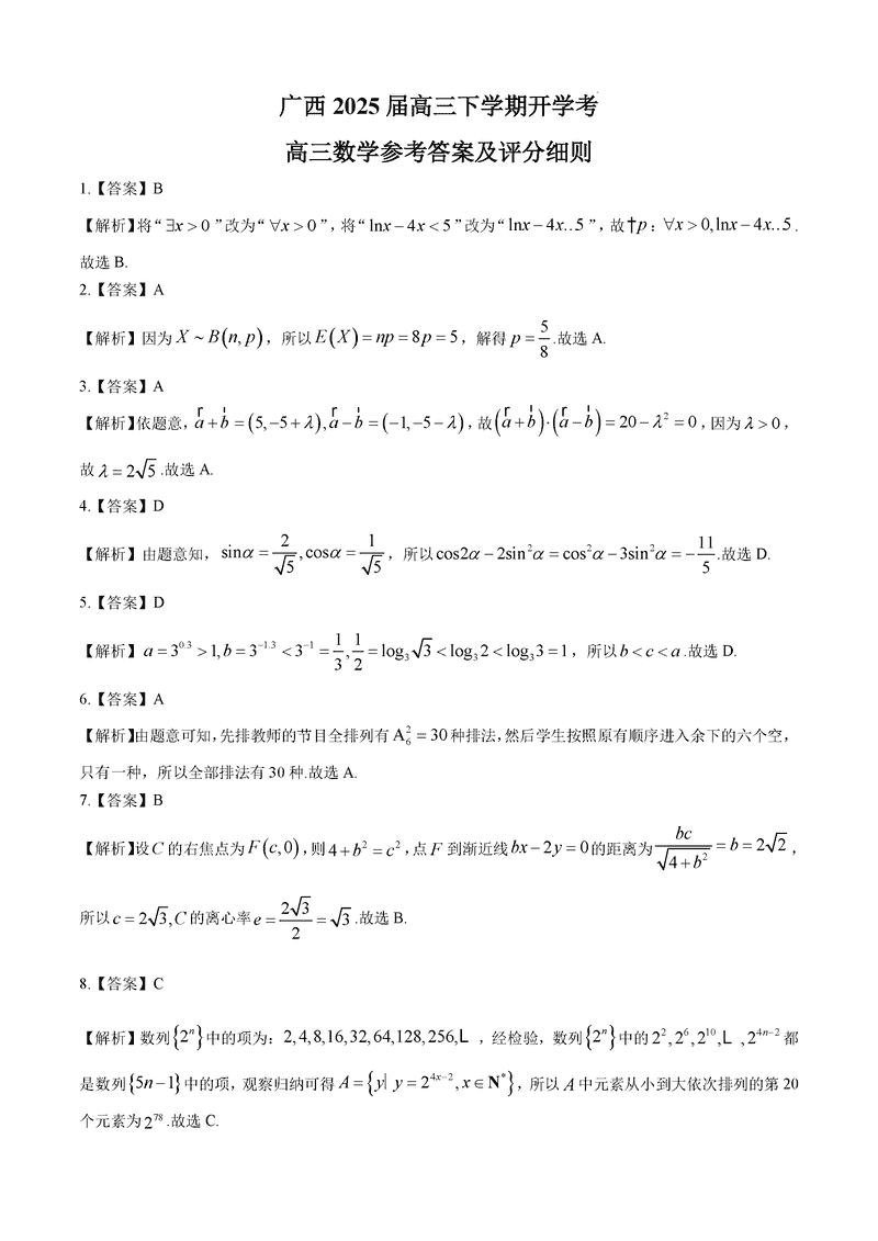 2025届广西上进联考高三下学期2月开学数学考试已于近日开考,为方便考生考后及时查看考试情况,查漏补缺、弥补不足,本文整理了试题答案解析相关信息!