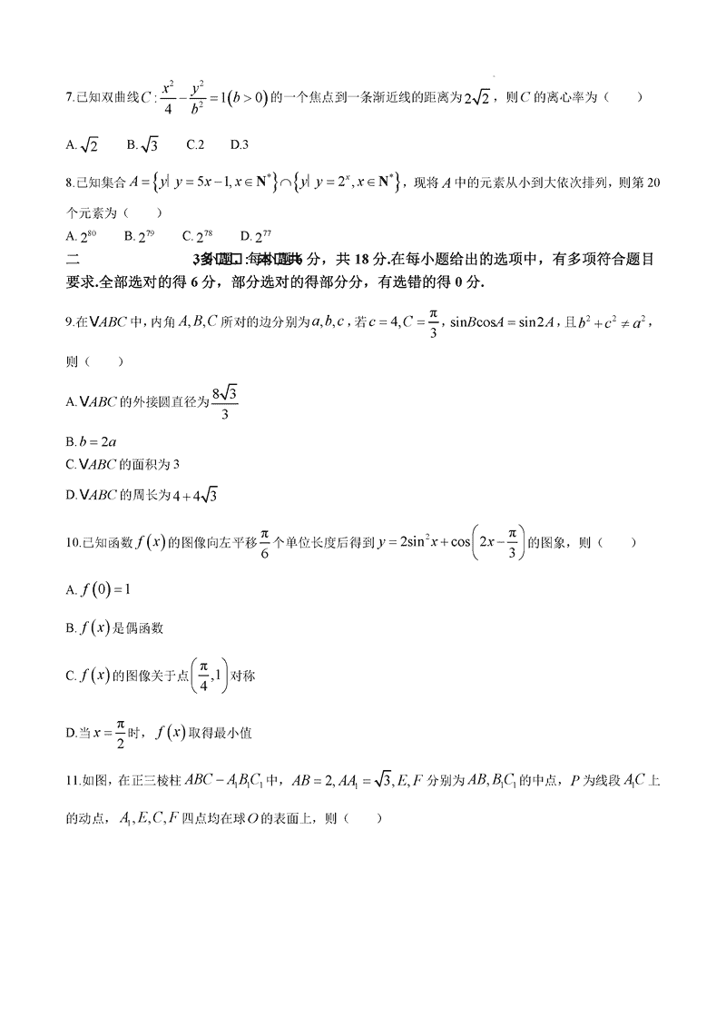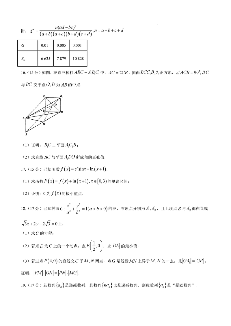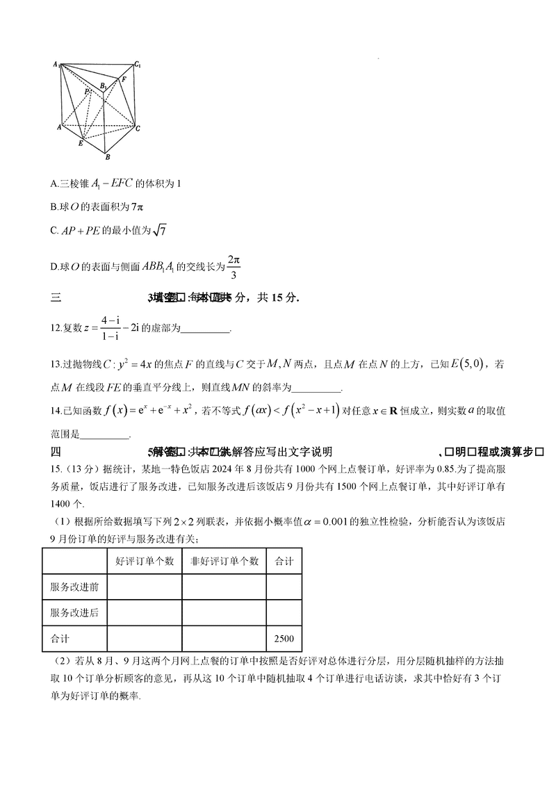 2025届广西上进联考高三下学期2月开学数学试题及答案
