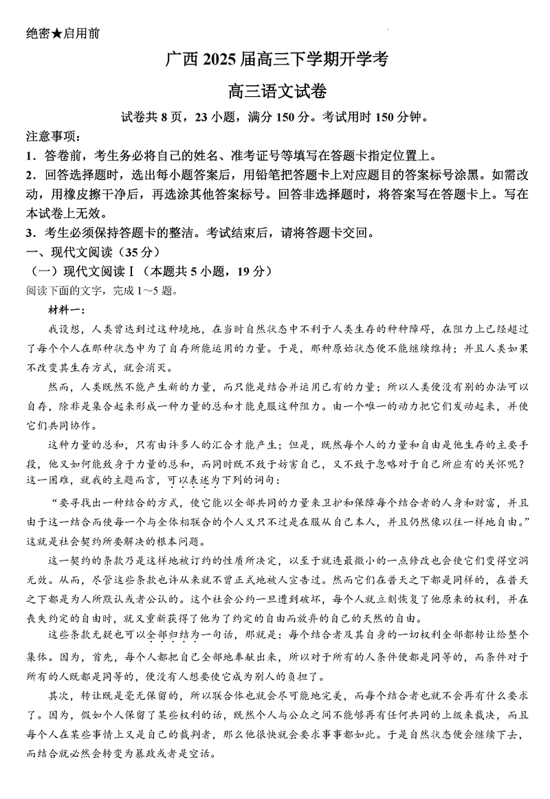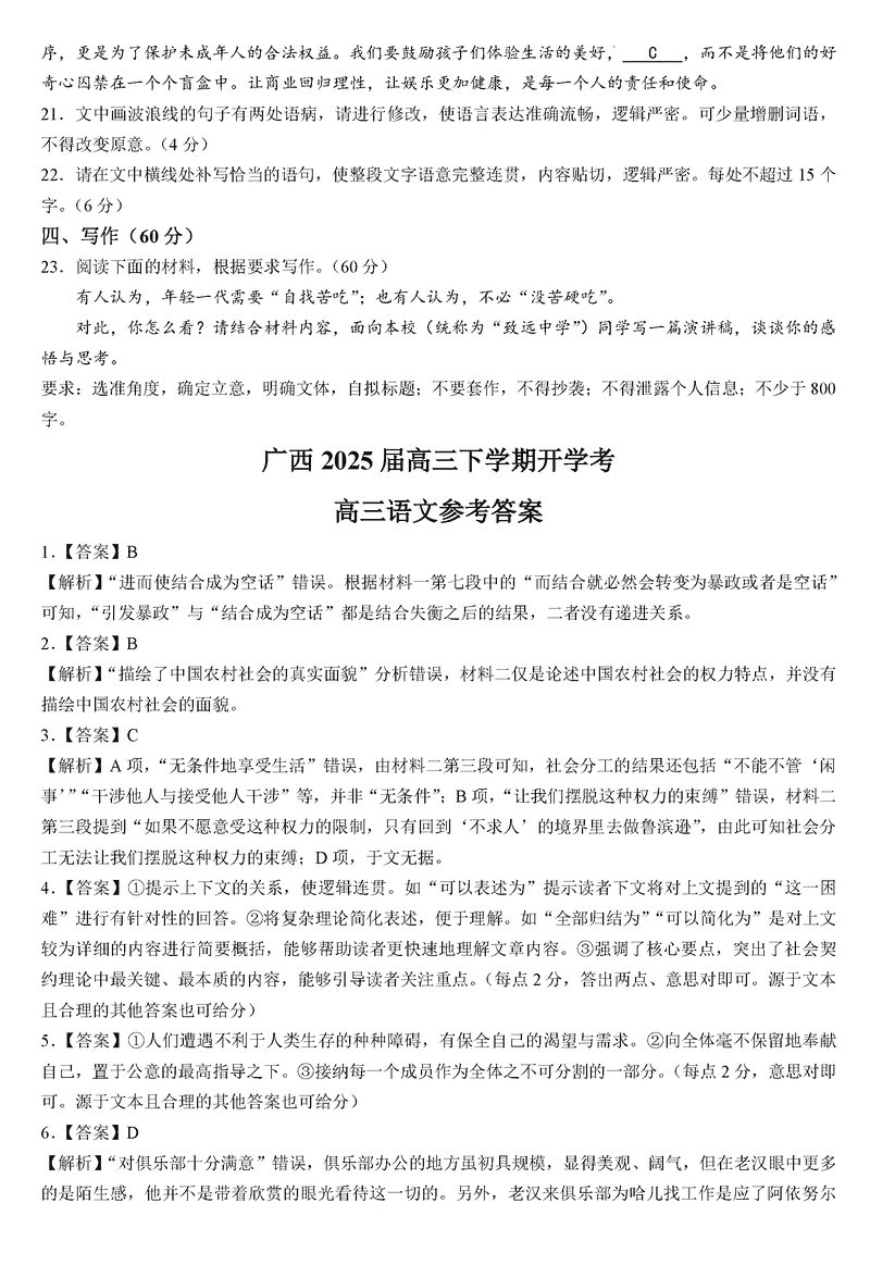 2025届广西上进联考高三下学期2月开学语文考试已于近日开考,为方便考生考后及时查看考试情况,查漏补缺、弥补不足,本文整理了试题答案解析相关信息!