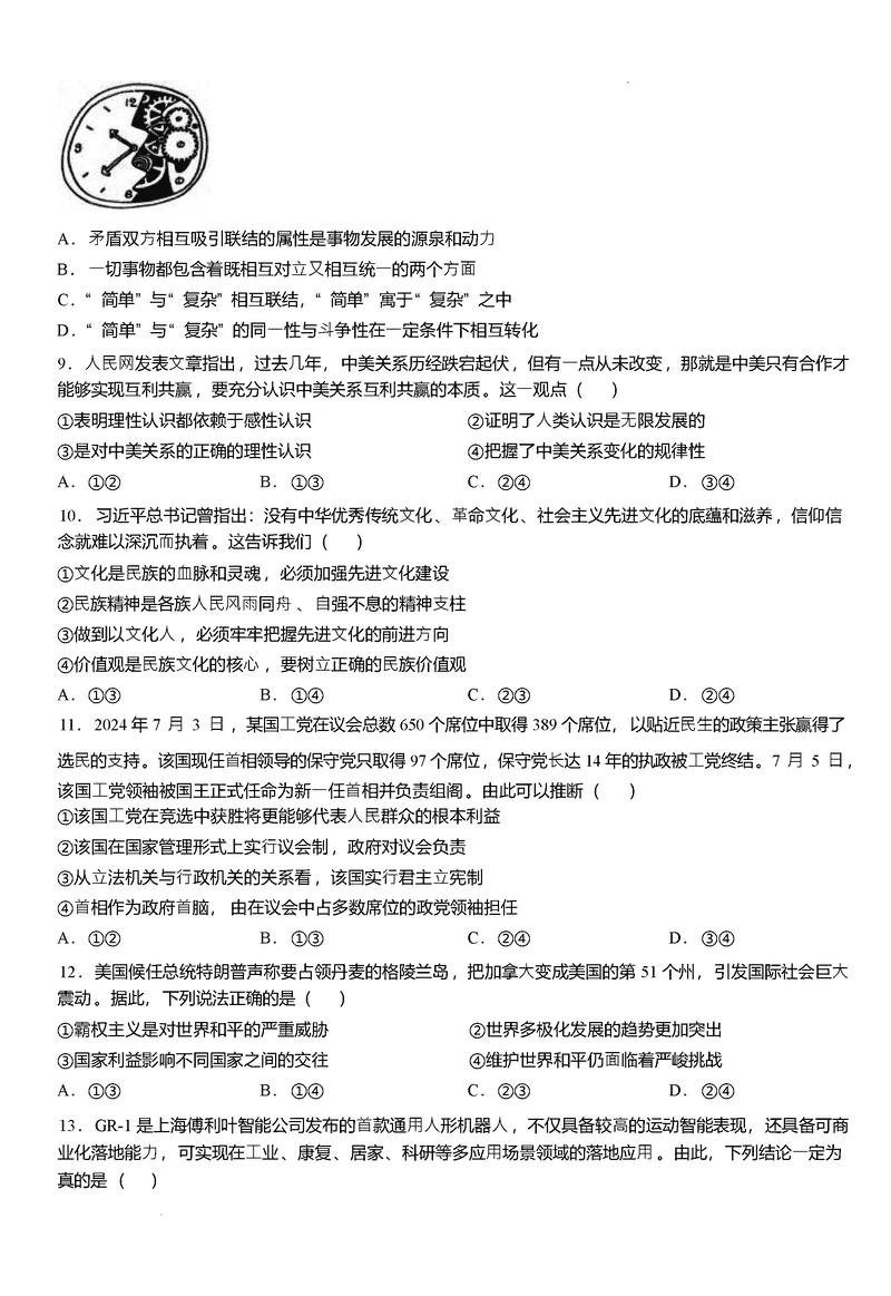 2025届广西上进联考高三下学期2月开学政治试题及答案
