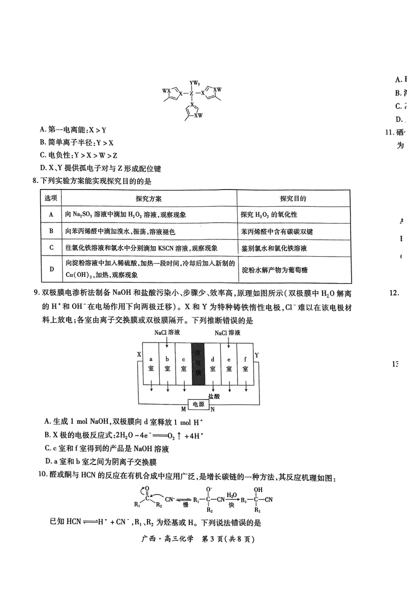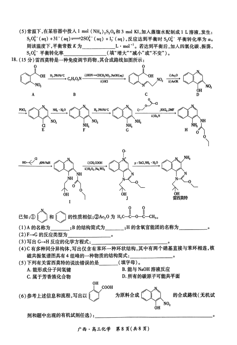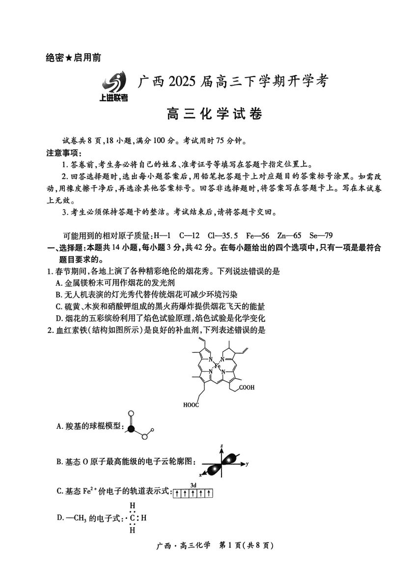 2025届广西上进联考高三下学期2月开学化学试题及答案