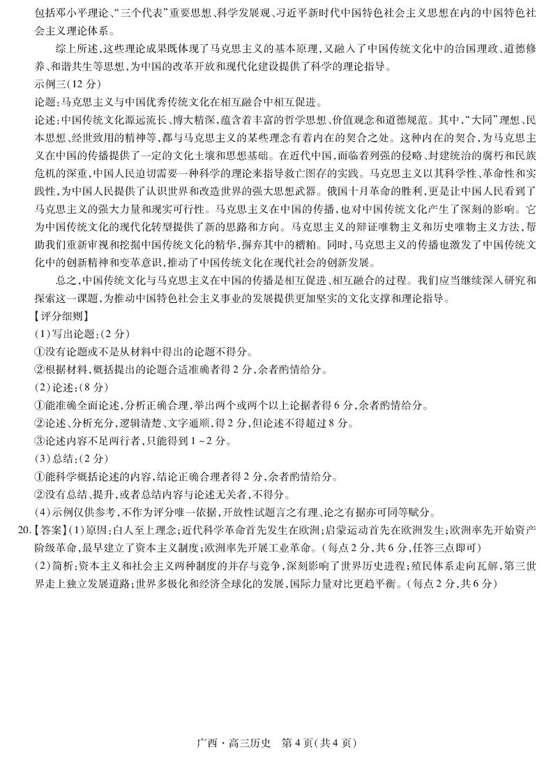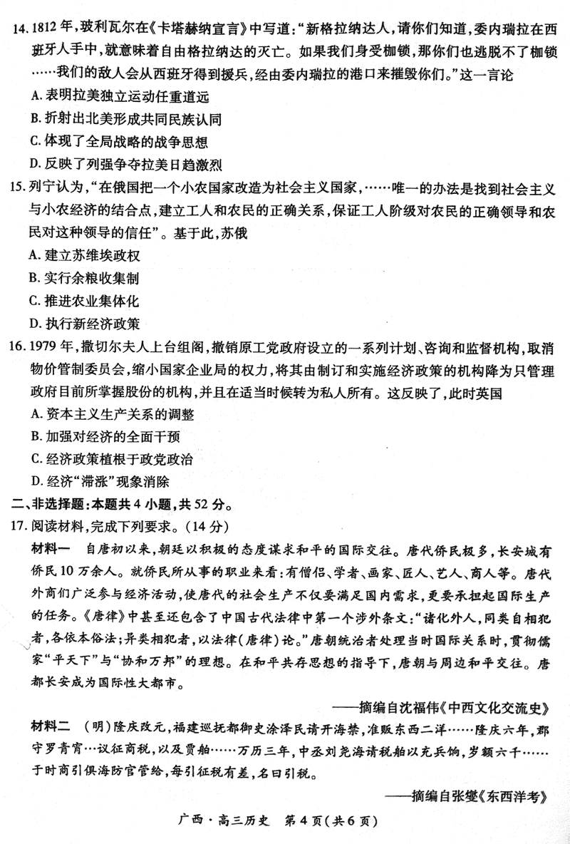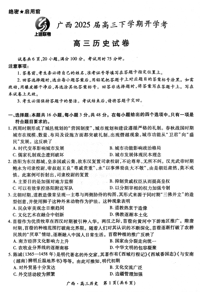 2025届广西上进联考高三下学期2月开学历史试题及答案