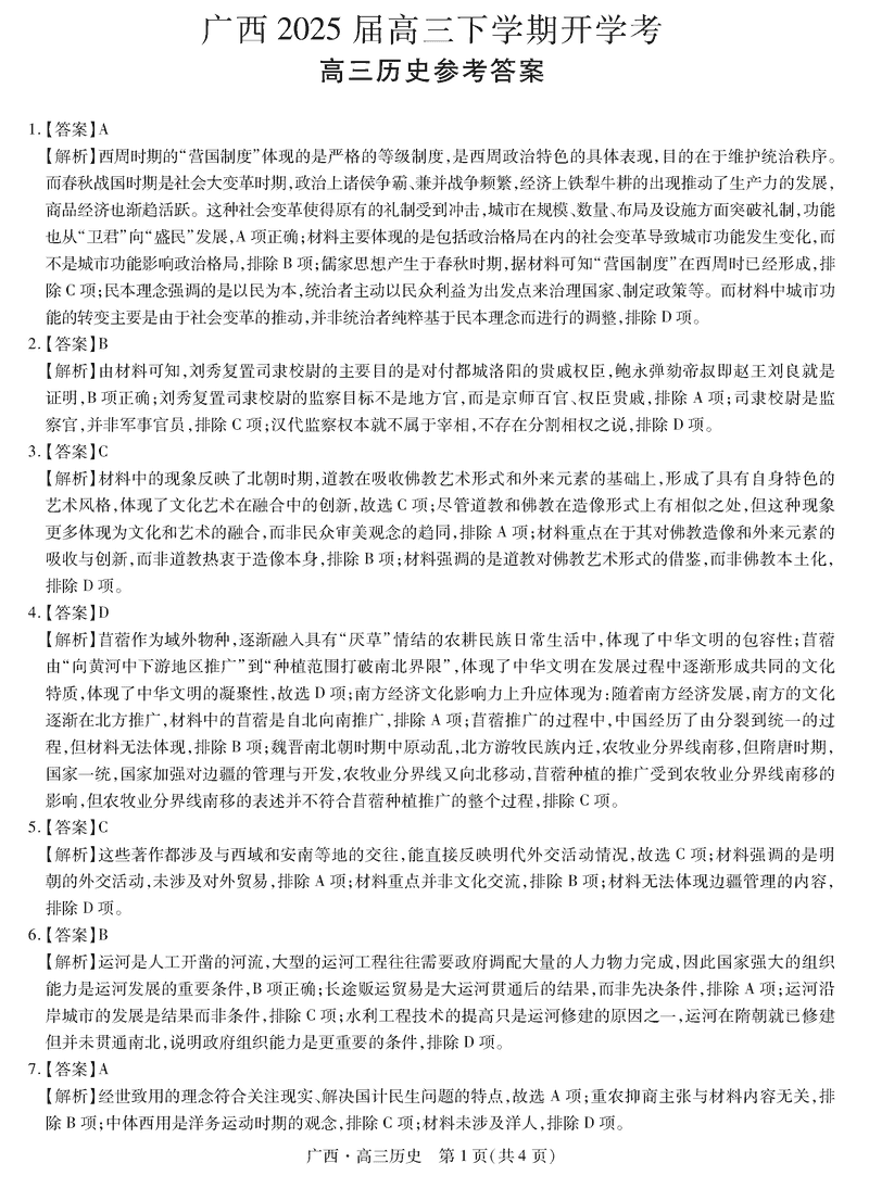 2025届广西上进联考高三下学期2月开学历史考试已于近日开考,为方便考生考后及时查看考试情况,查漏补缺、弥补不足,本文整理了试题答案解析相关信息!