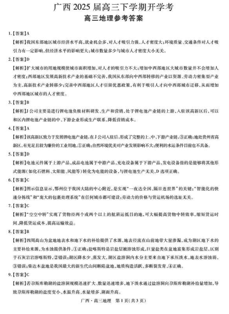 2025届广西上进联考高三下学期2月开学地理考试已于近日开考,为方便考生考后及时查看考试情况,查漏补缺、弥补不足,本文整理了试题答案解析相关信息!