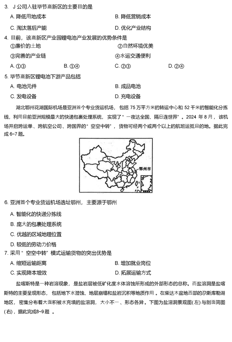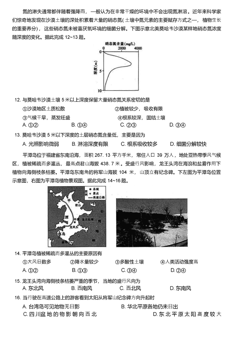 地理试题及答案解析