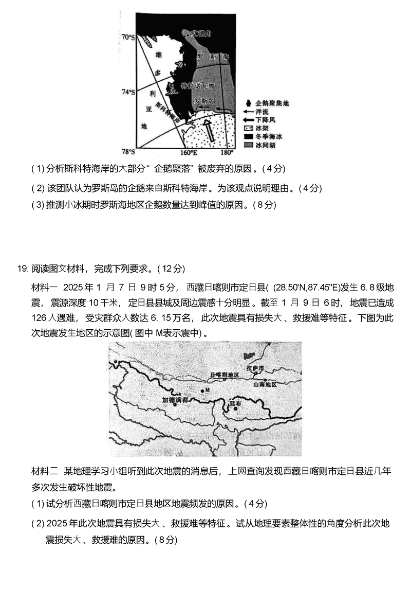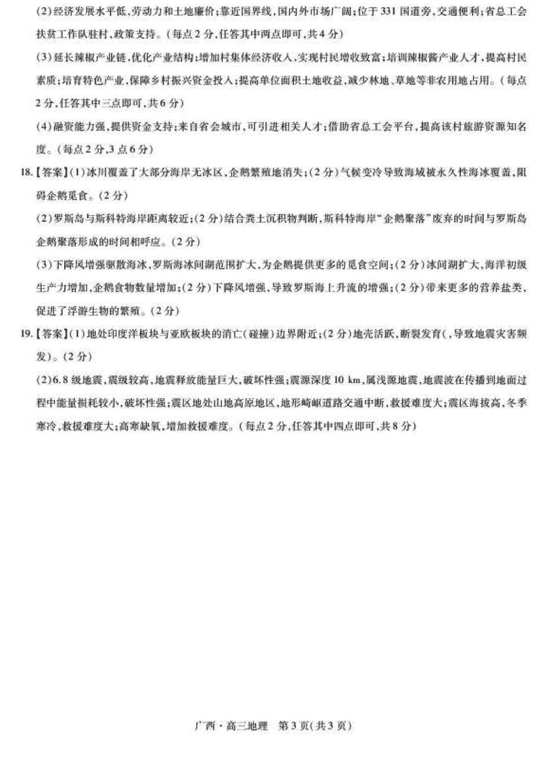 2025届广西上进联考高三下学期2月开学地理试题及答案