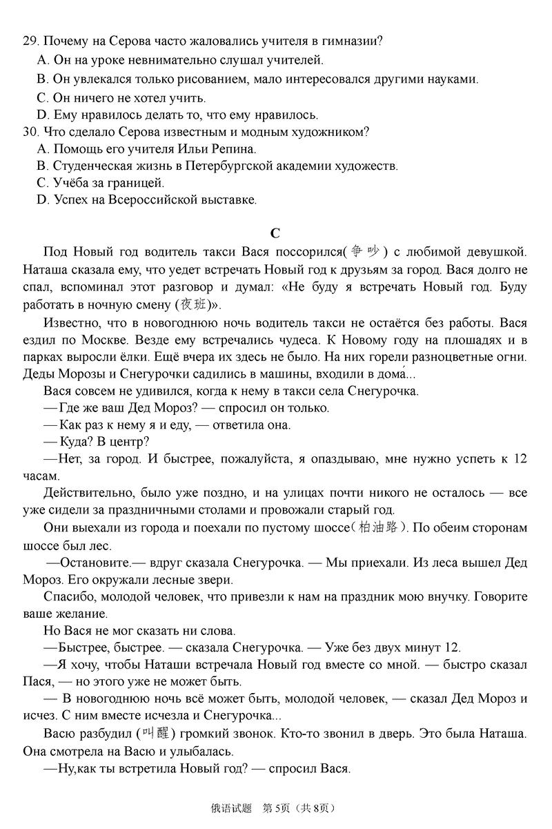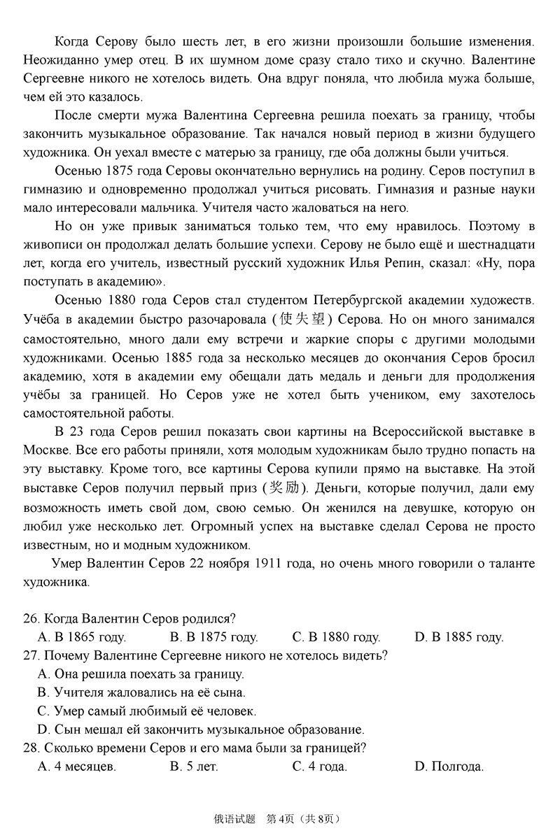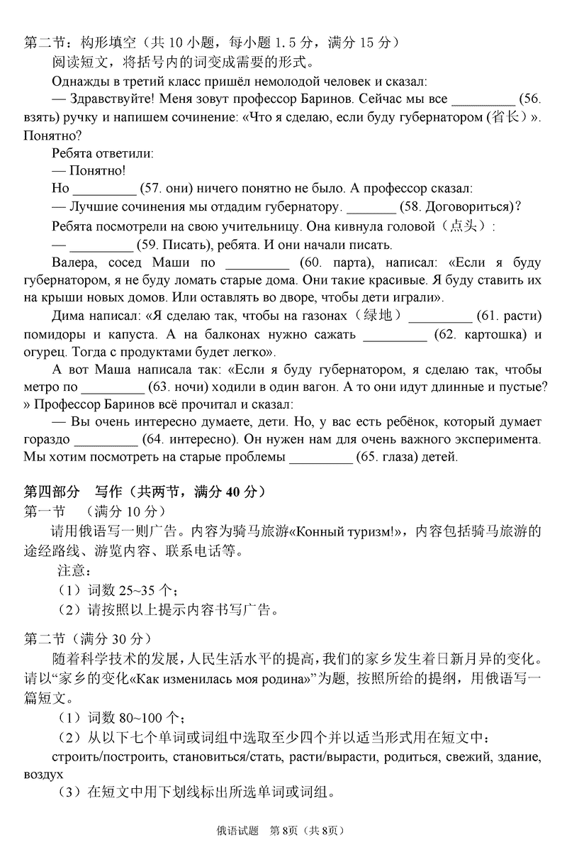 俄语试题及答案解析