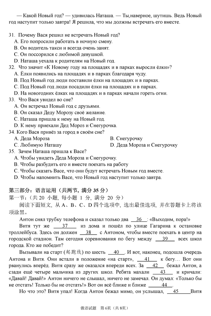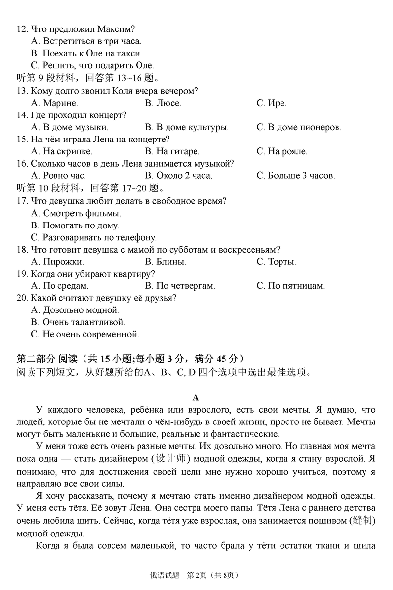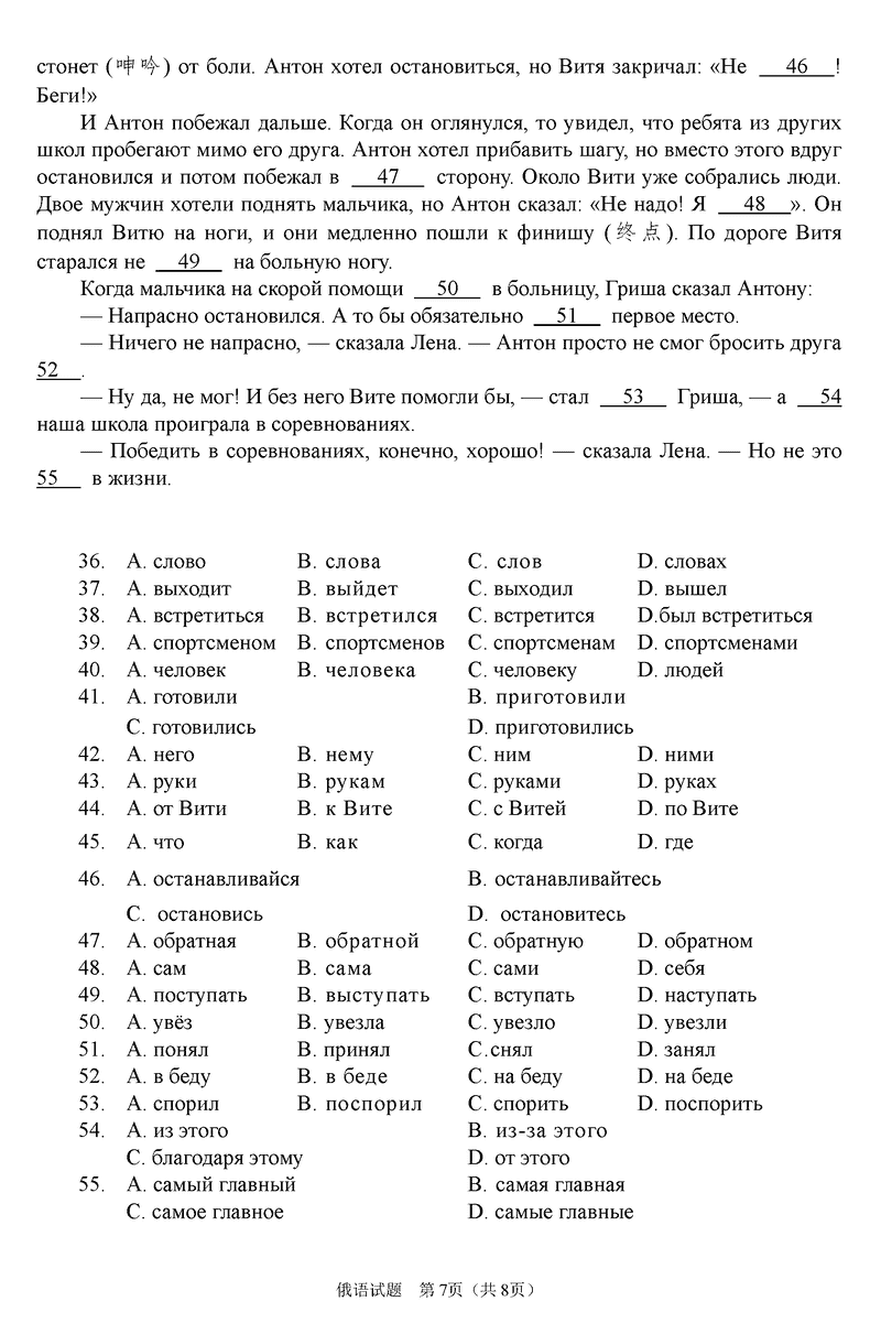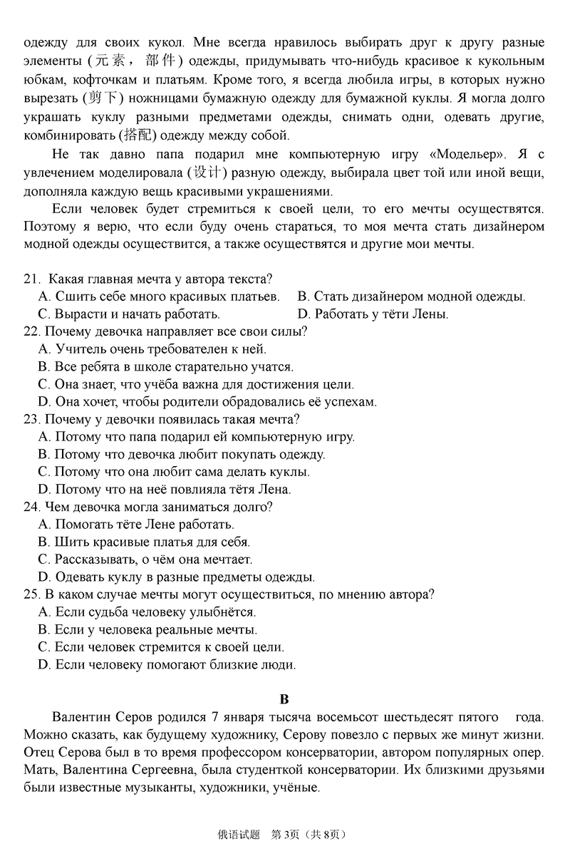 俄语试题及答案解析