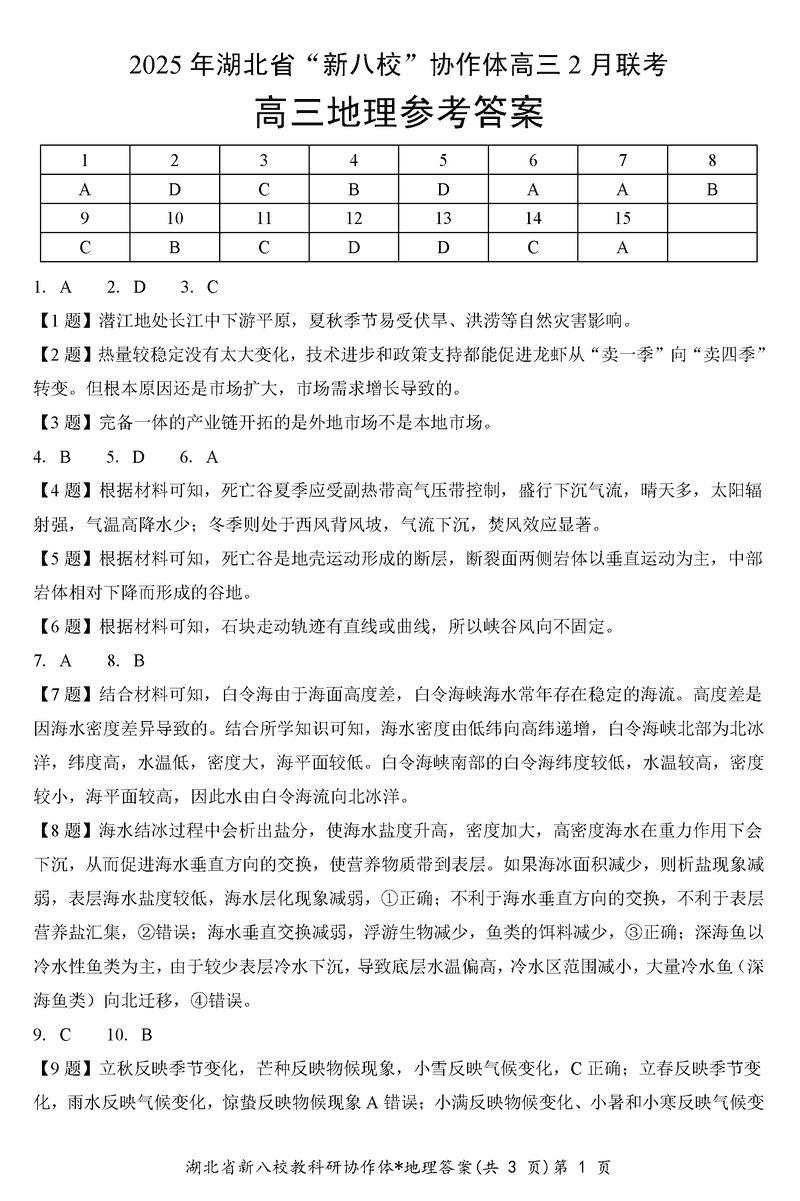 2025年湖北省新八校协作体高三2月联考地理考试已于近日开考,为方便考生考后及时查看考试情况,查漏补缺、弥补不足,本文整理了试题答案解析相关信息!