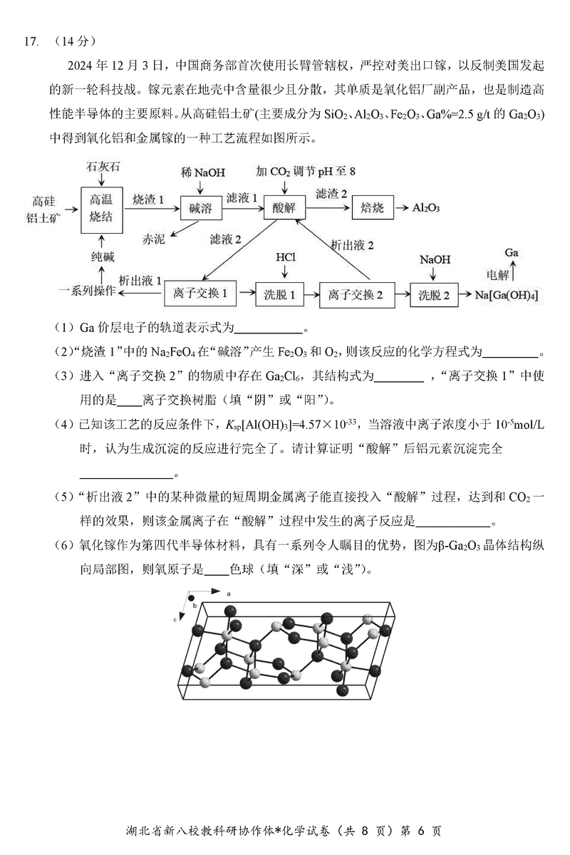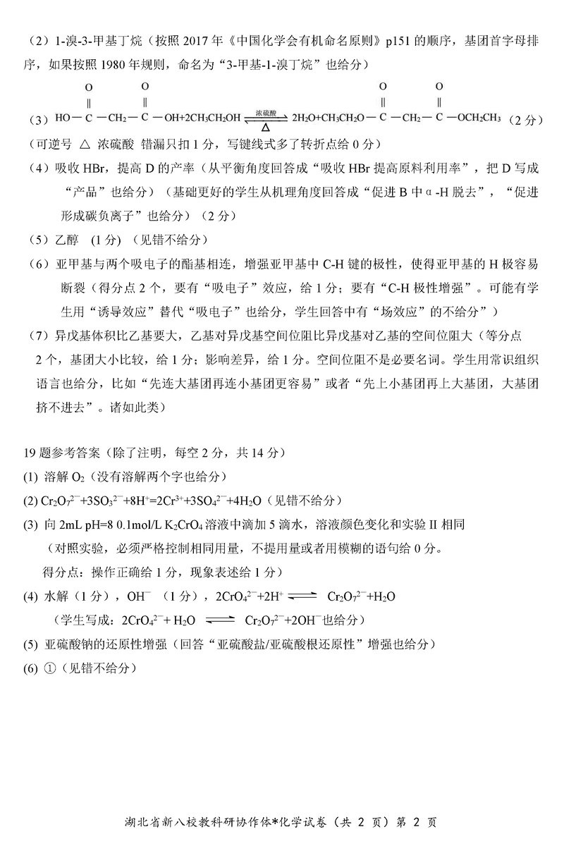 2025年湖北省新八校协作体高三2月联考化学考试已于近日开考,为方便考生考后及时查看考试情况,查漏补缺、弥补不足,本文整理了试题答案解析相关信息!