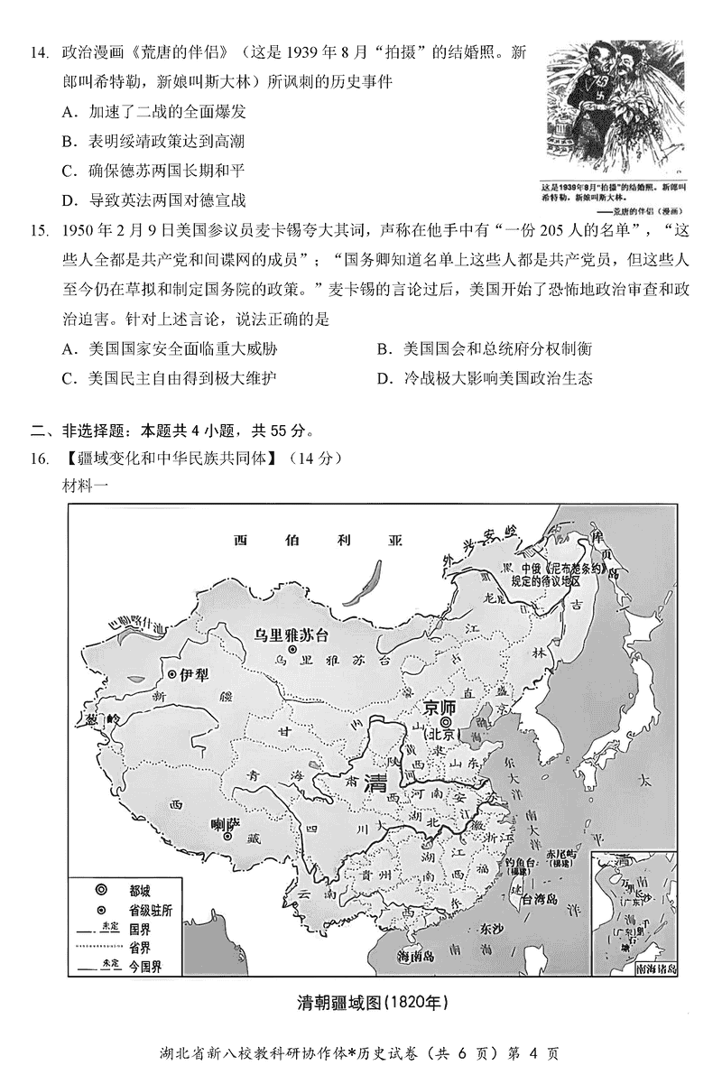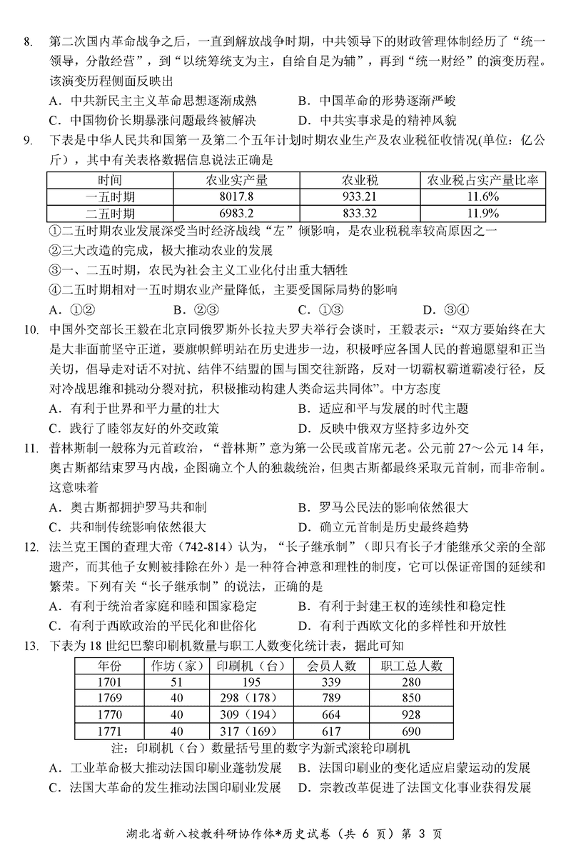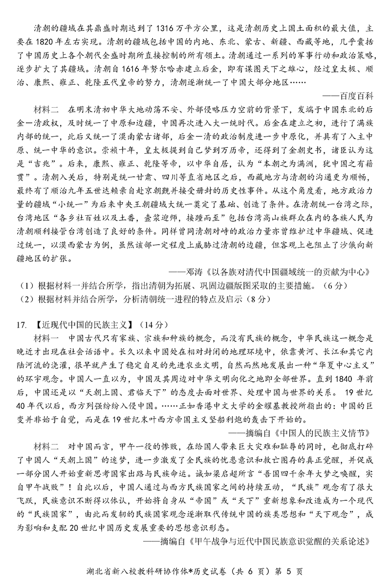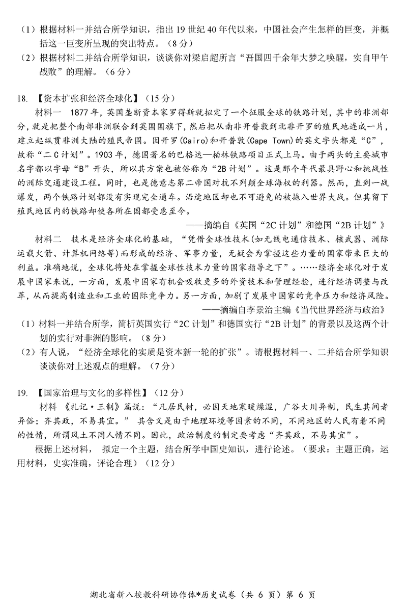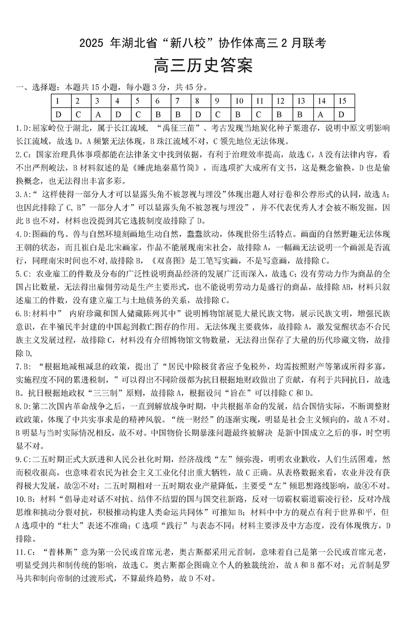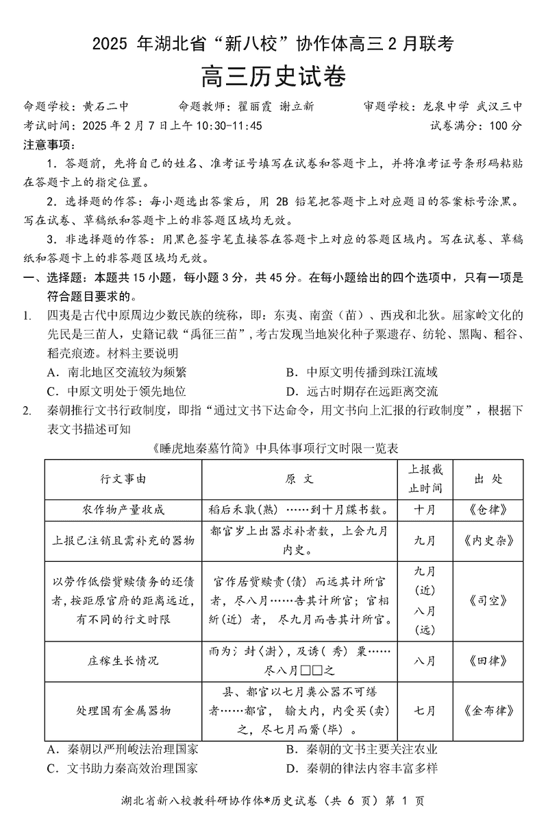 2025年湖北省新八校协作体高三2月联考历史试题及答案