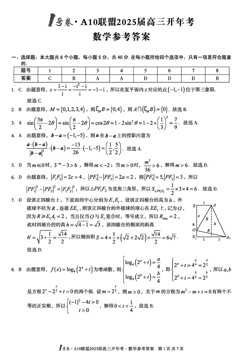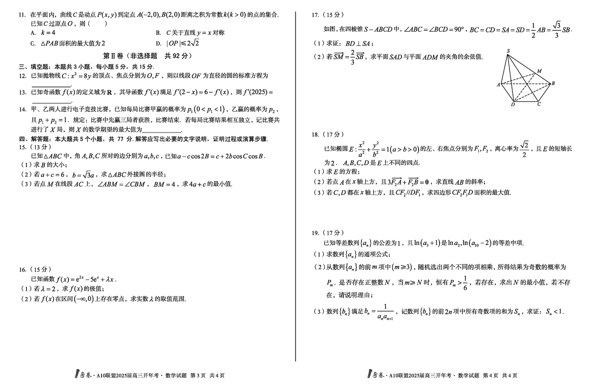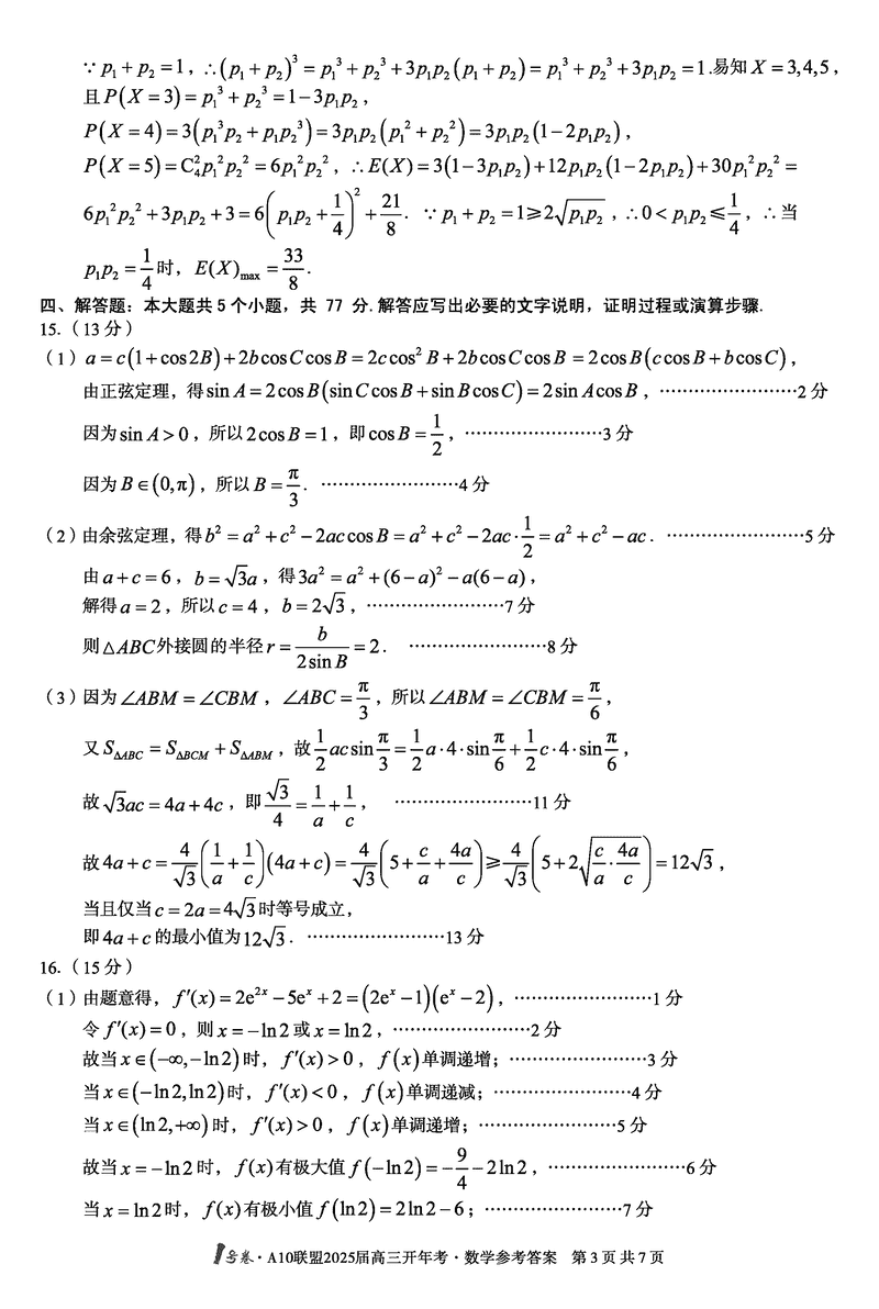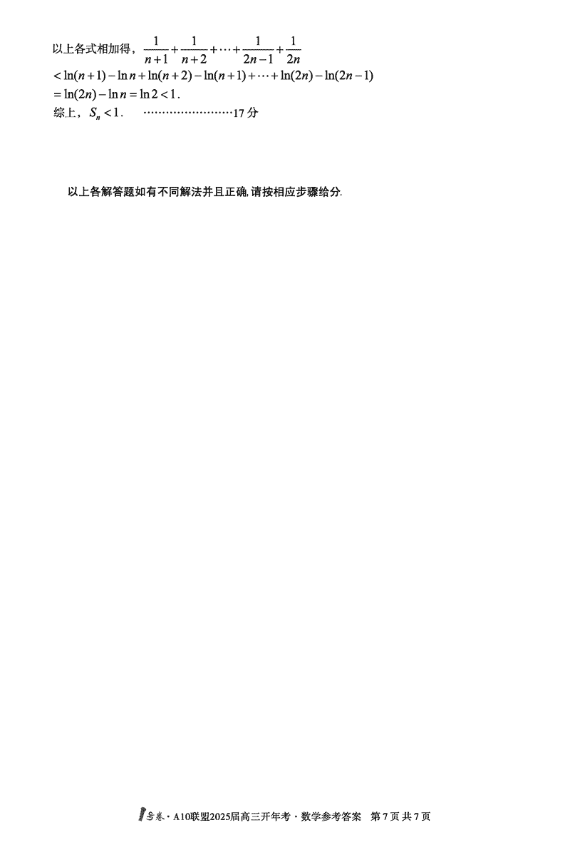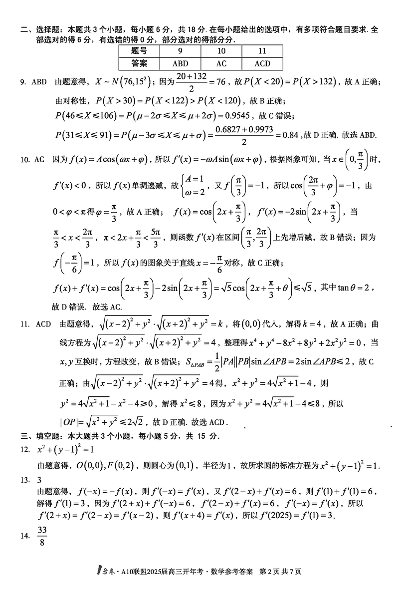 安徽省A10联盟2025届高三下学期开年考数学考试已于近日开考,为方便考生考后及时查看考试情况,查漏补缺、弥补不足,本文整理了试题答案解析相关信息!