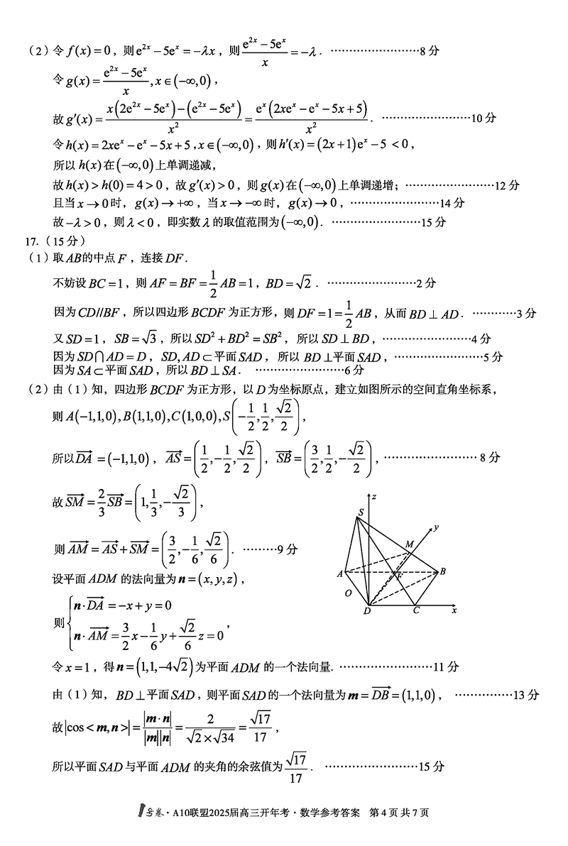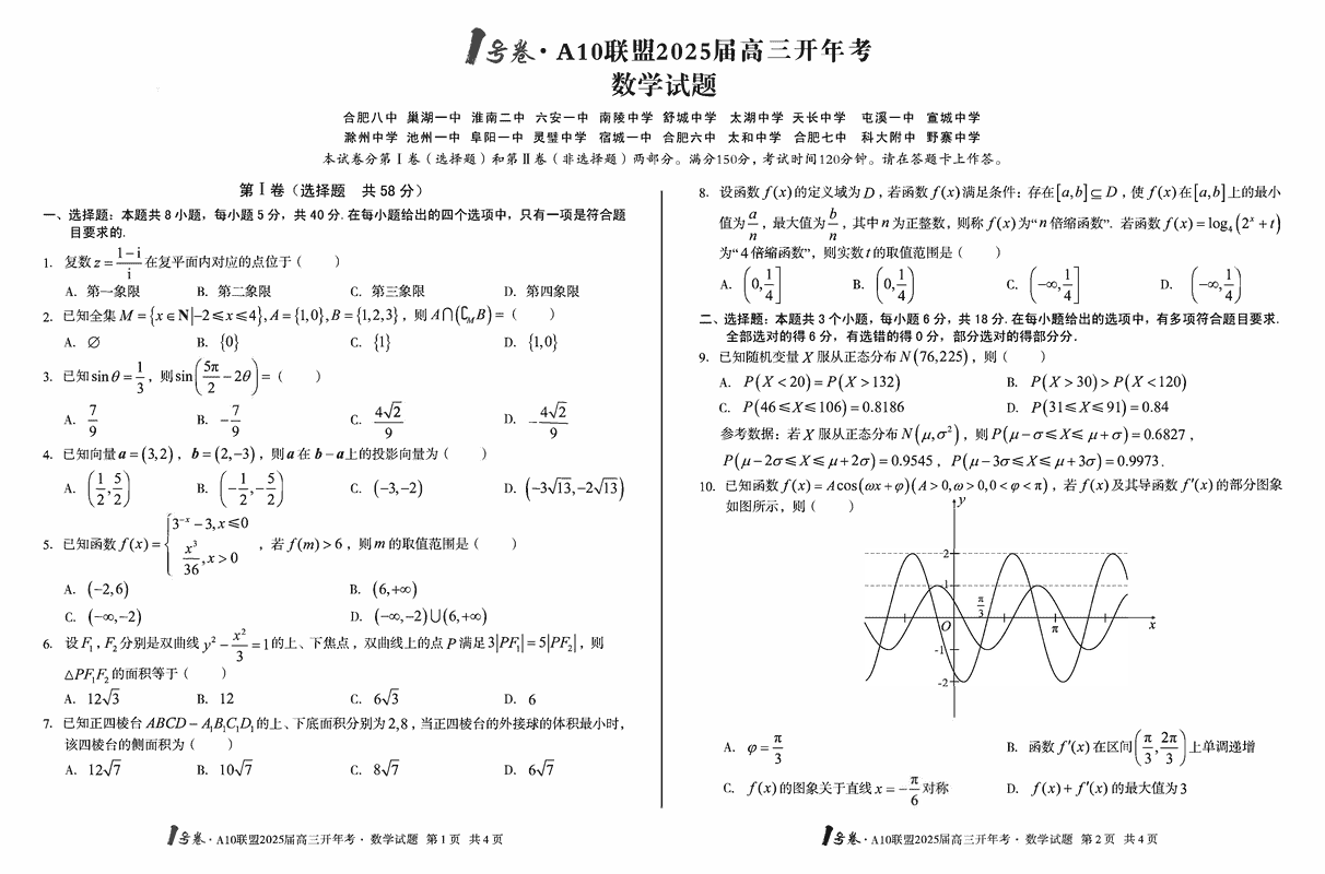 安徽省A10联盟2025届高三下学期开年考数学试题及答案