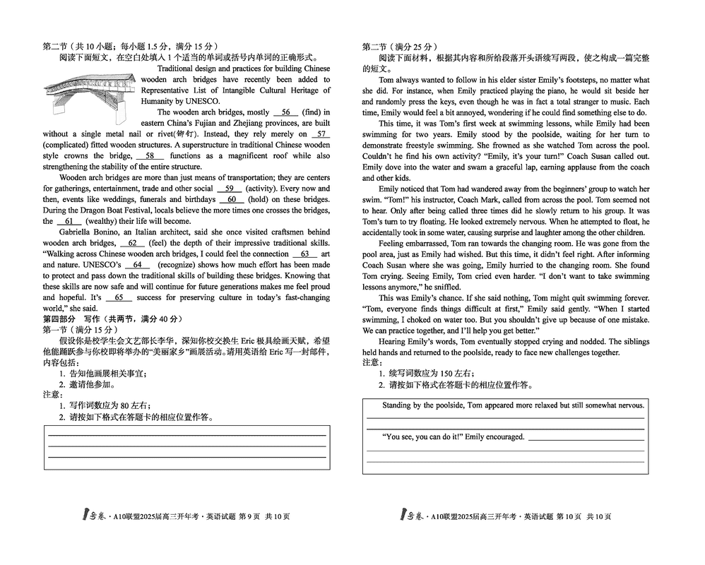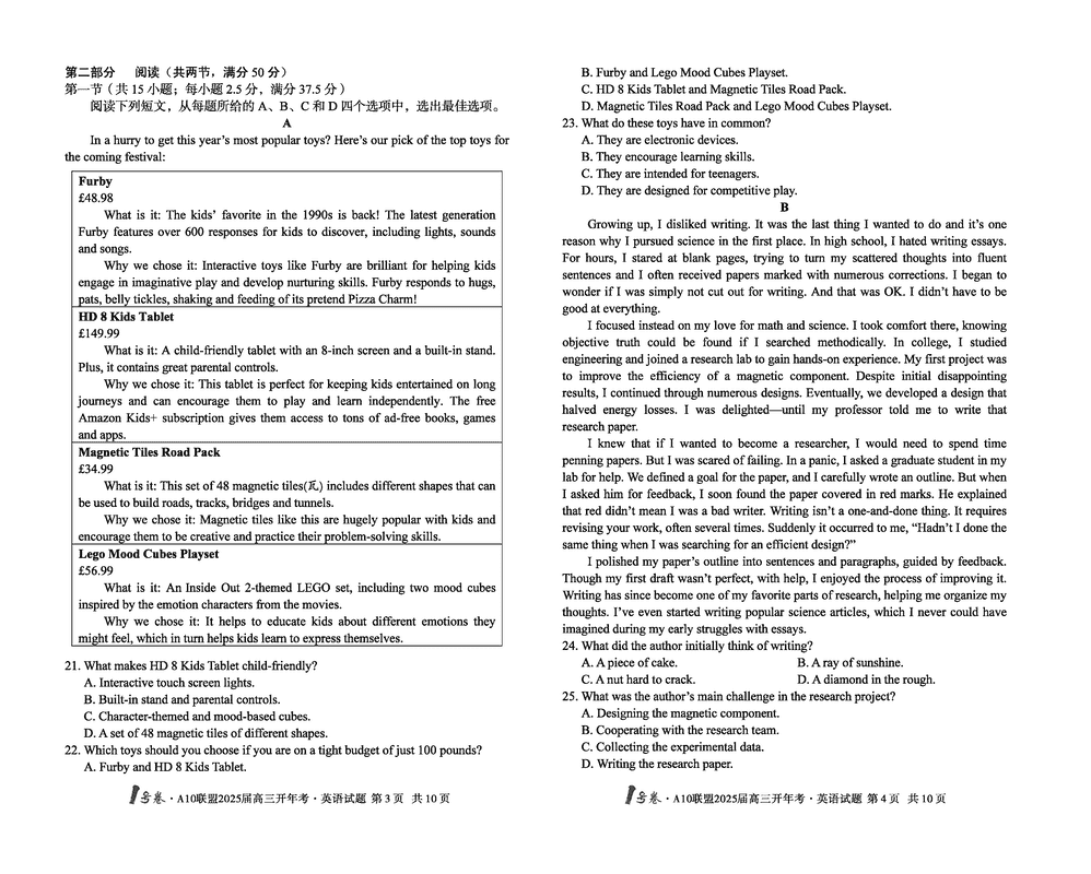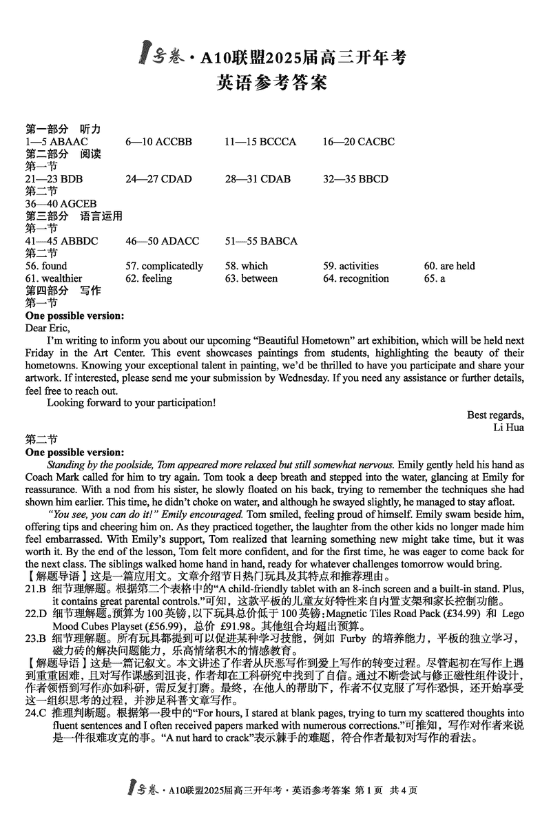 安徽省A10联盟2025届高三下学期开年考英语考试已于近日开考,为方便考生考后及时查看考试情况,查漏补缺、弥补不足,本文整理了试题答案解析相关信息!