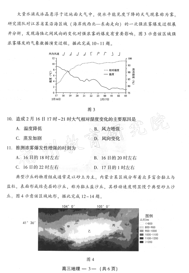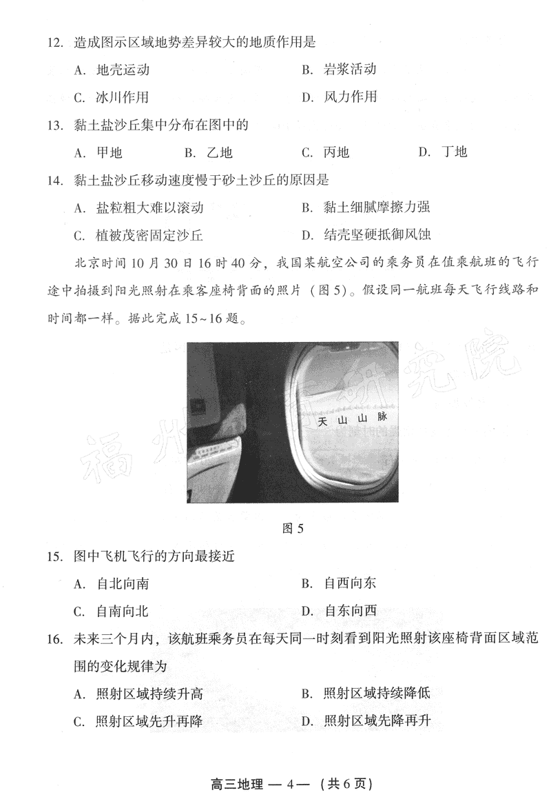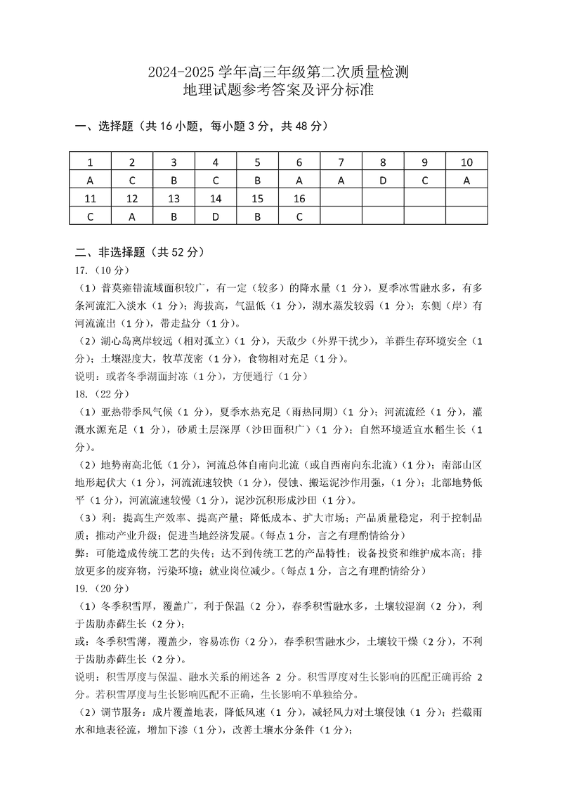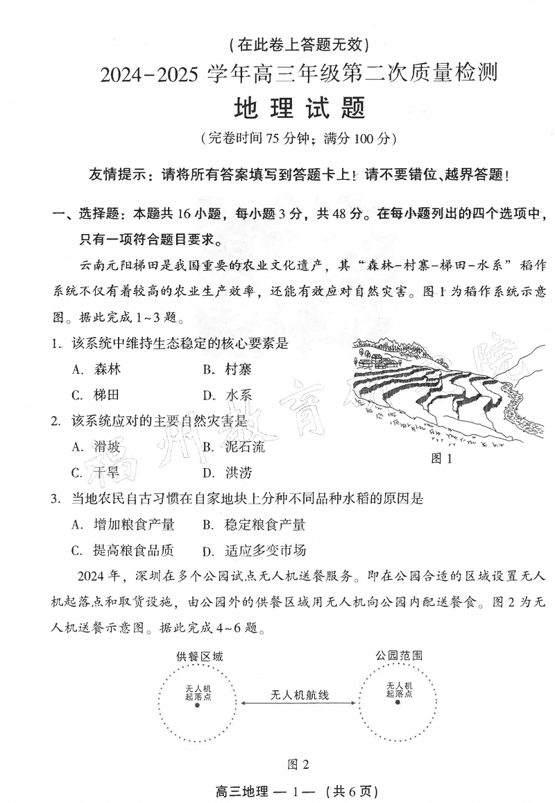 福州二检2024-2025学年高三第二次质检地理试题及答案