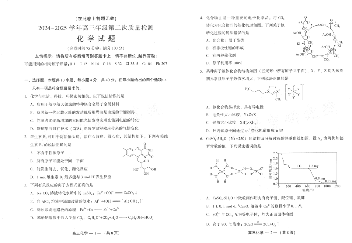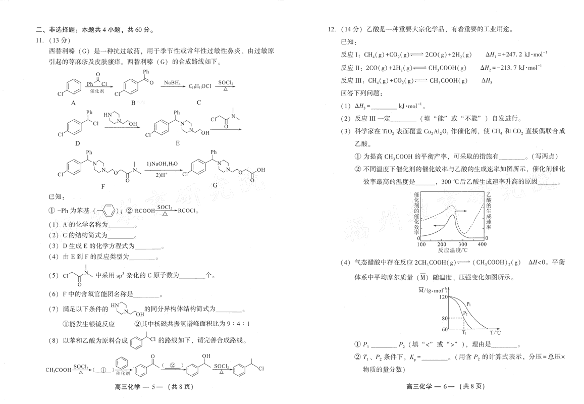 福州二检2024-2025学年高三第二次质检化学试题及答案