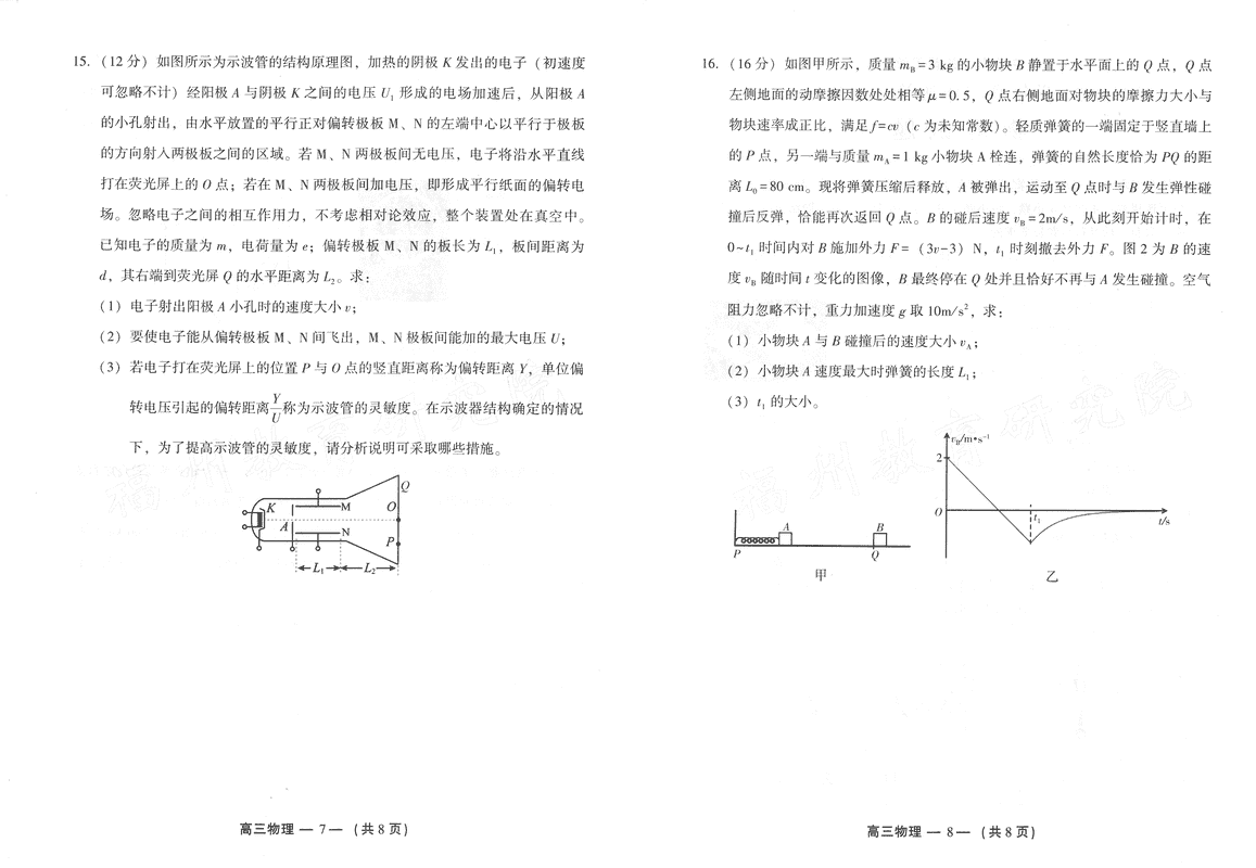 福州二检2024-2025学年高三第二次质检物理考试已于近日开考,为方便考生考后及时查看考试情况,查漏补缺、弥补不足,本文整理了试题答案解析相关信息!