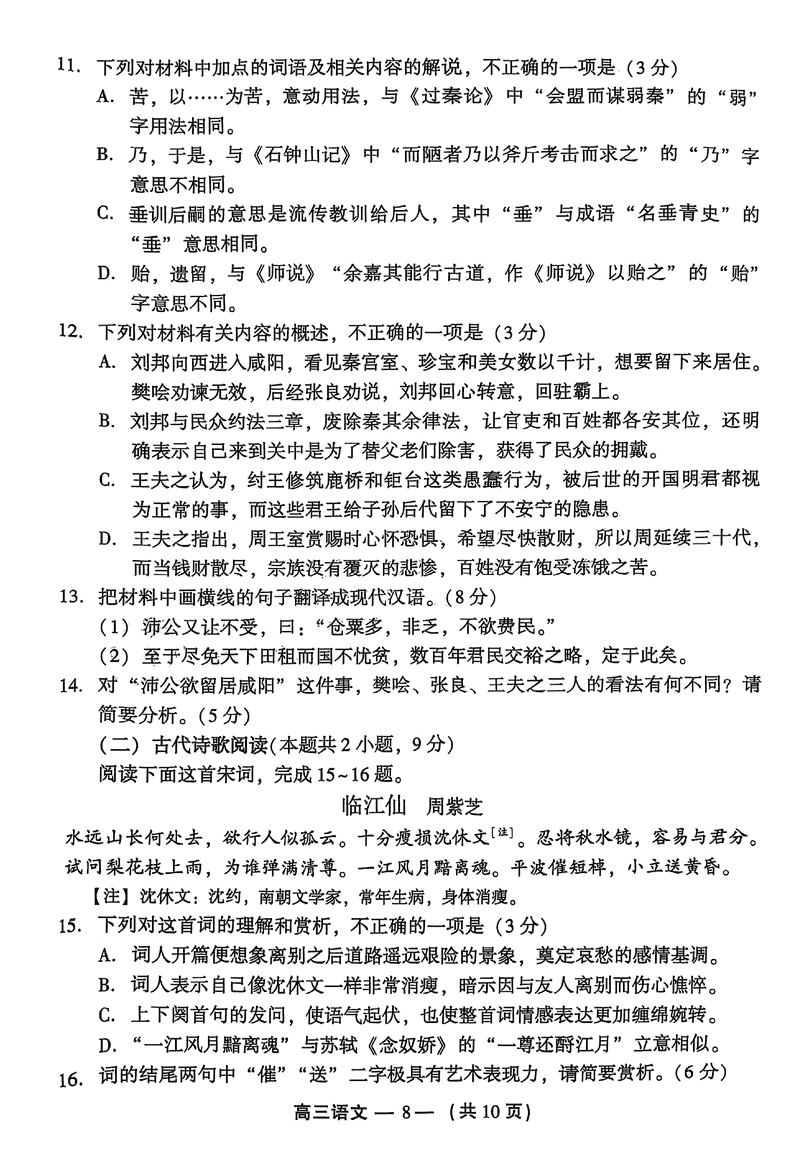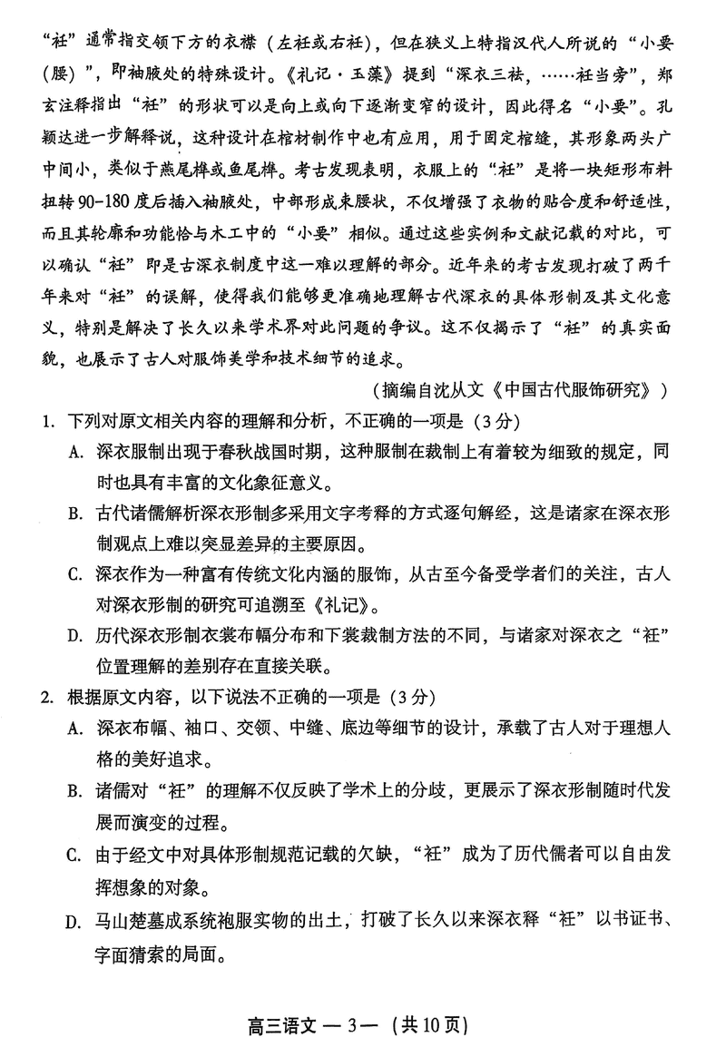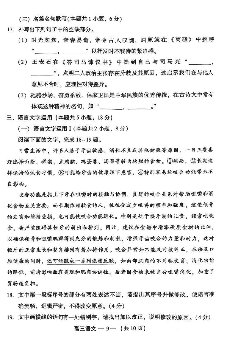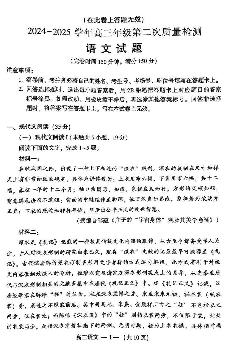 福州二检2024-2025学年高三第二次质检语文试题及答案