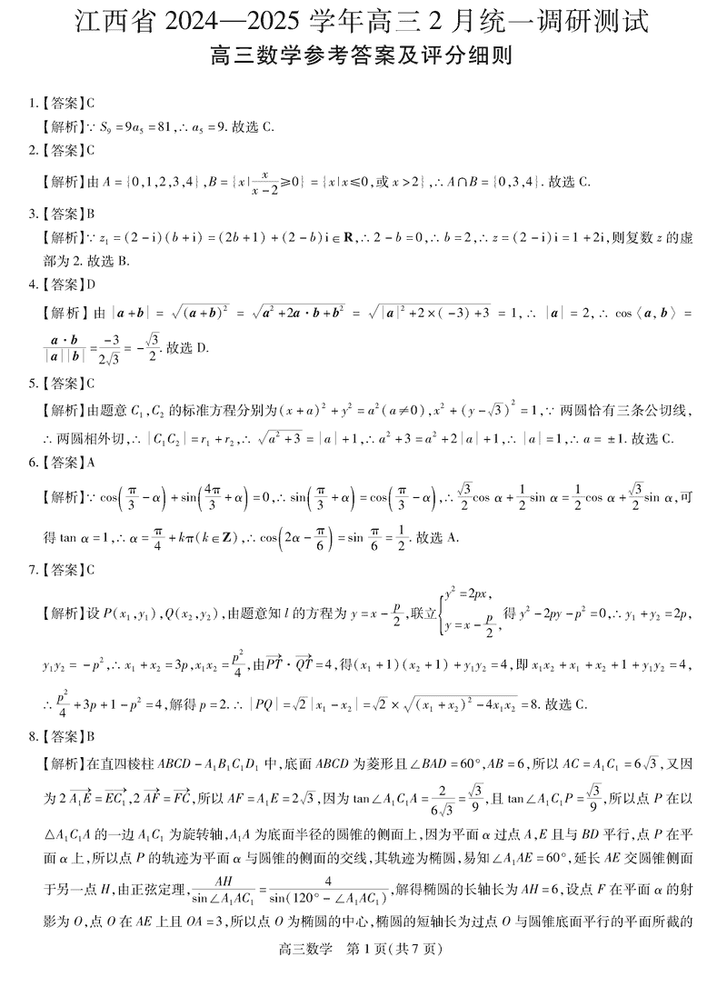 江西上进联考2024-2025学年高三下学期2月统测数学考试已于近日开考,为方便考生考后及时查看考试情况,查漏补缺、弥补不足,本文整理了试题答案解析相关信息!