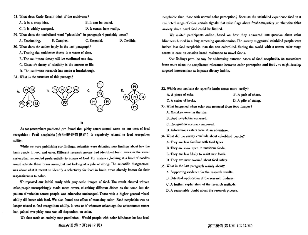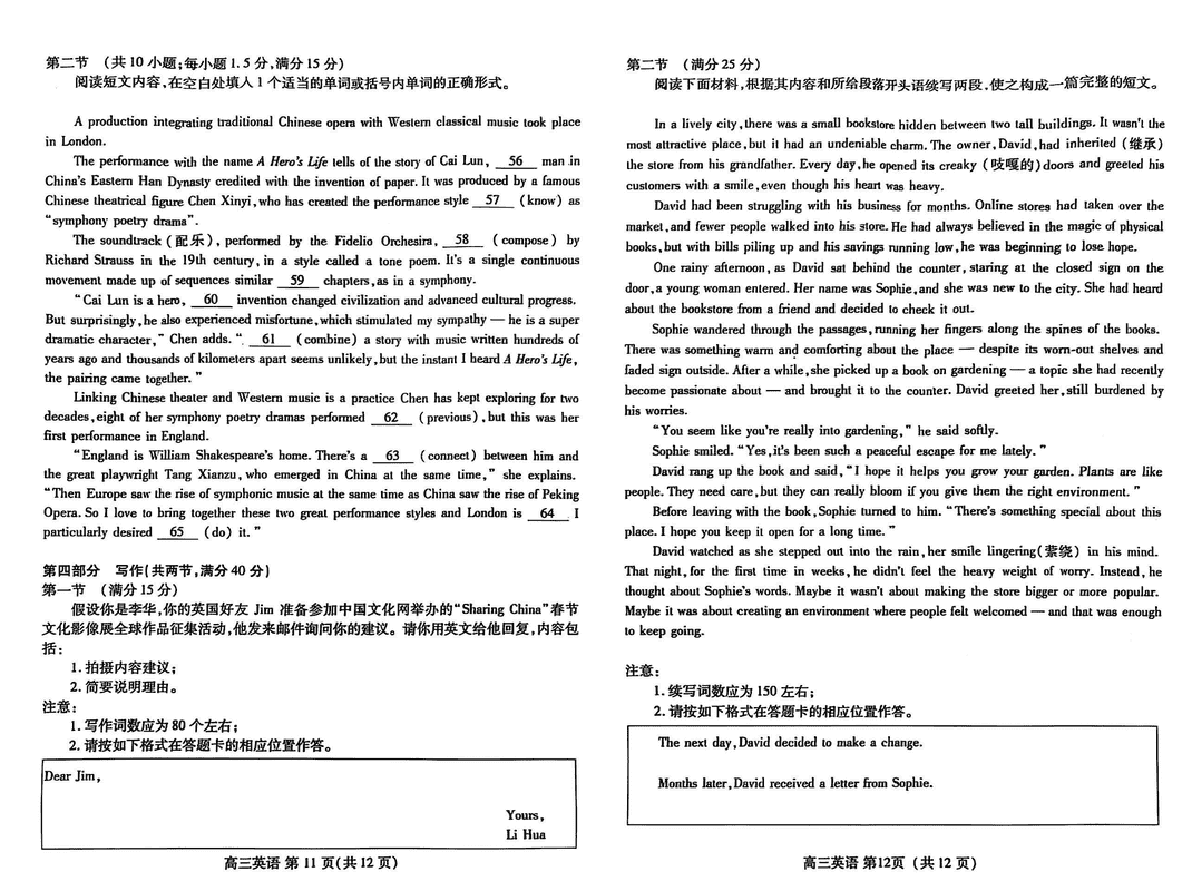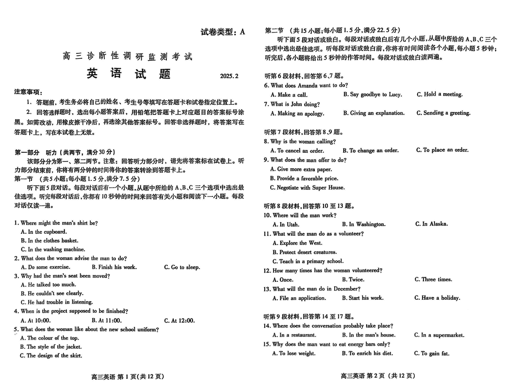 山东潍坊2025届高三2月诊断性调研监测英语试题及答案