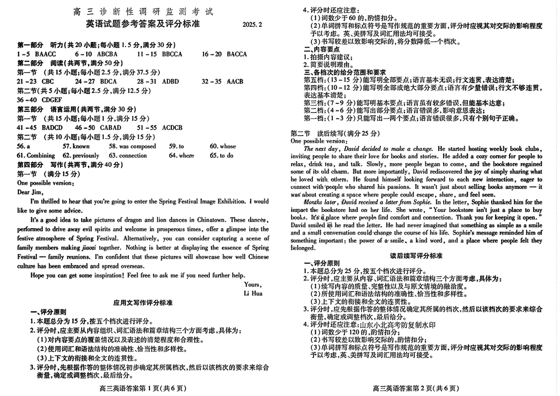 山东潍坊2025届高三2月诊断性调研监测英语考试已于近日开考,为方便考生考后及时查看考试情况,查漏补缺、弥补不足,本文整理了试题答案解析相关信息!