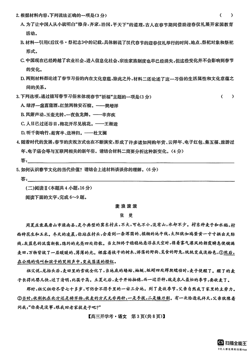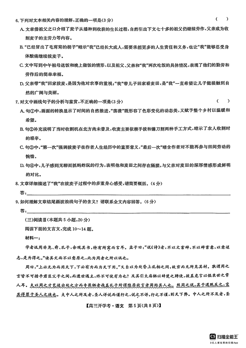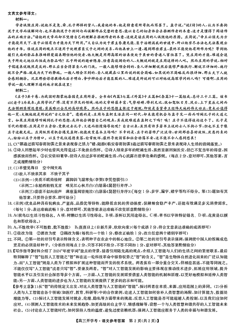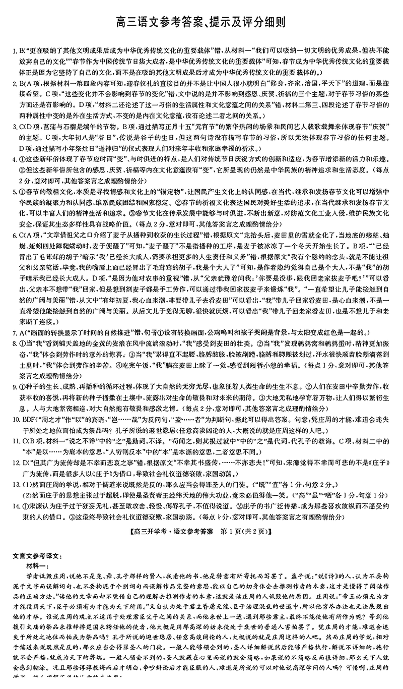 九师联盟2025届高三下学期2月开学考语文试题及答案