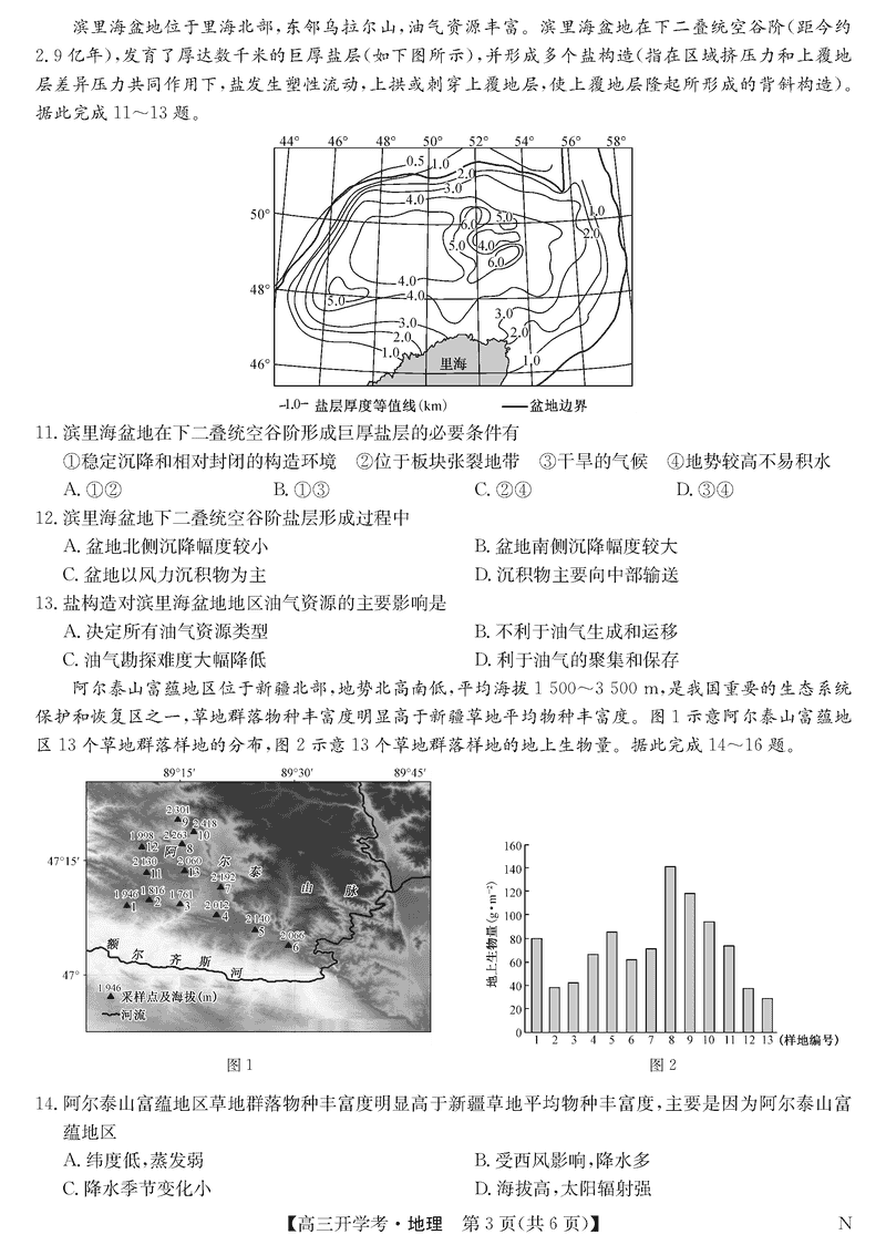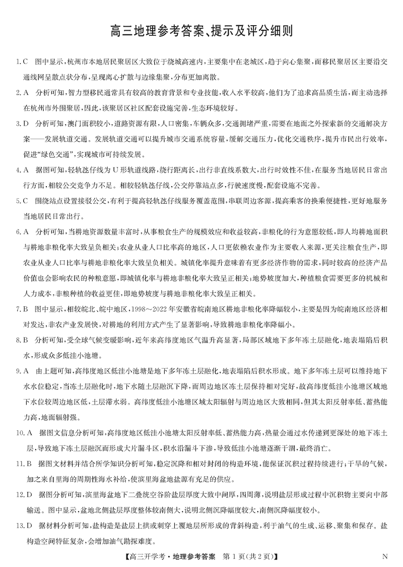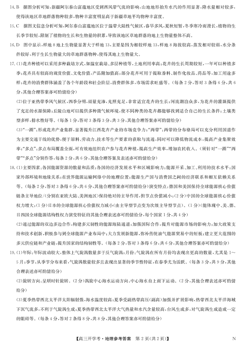 九师联盟2025届高三下学期2月开学考地理试题及答案