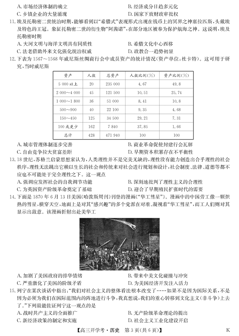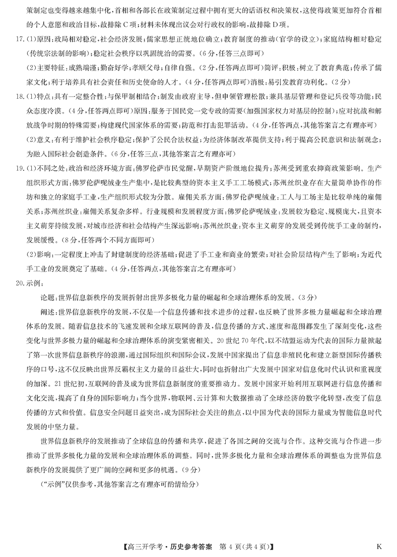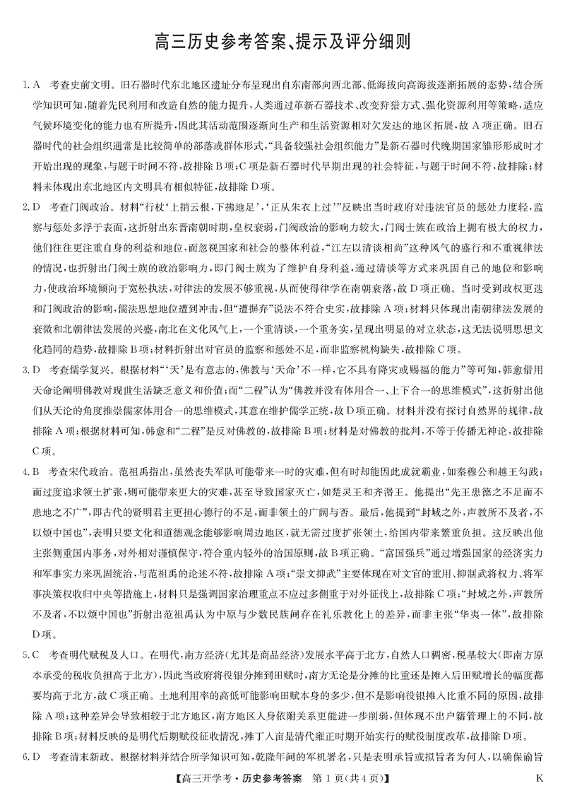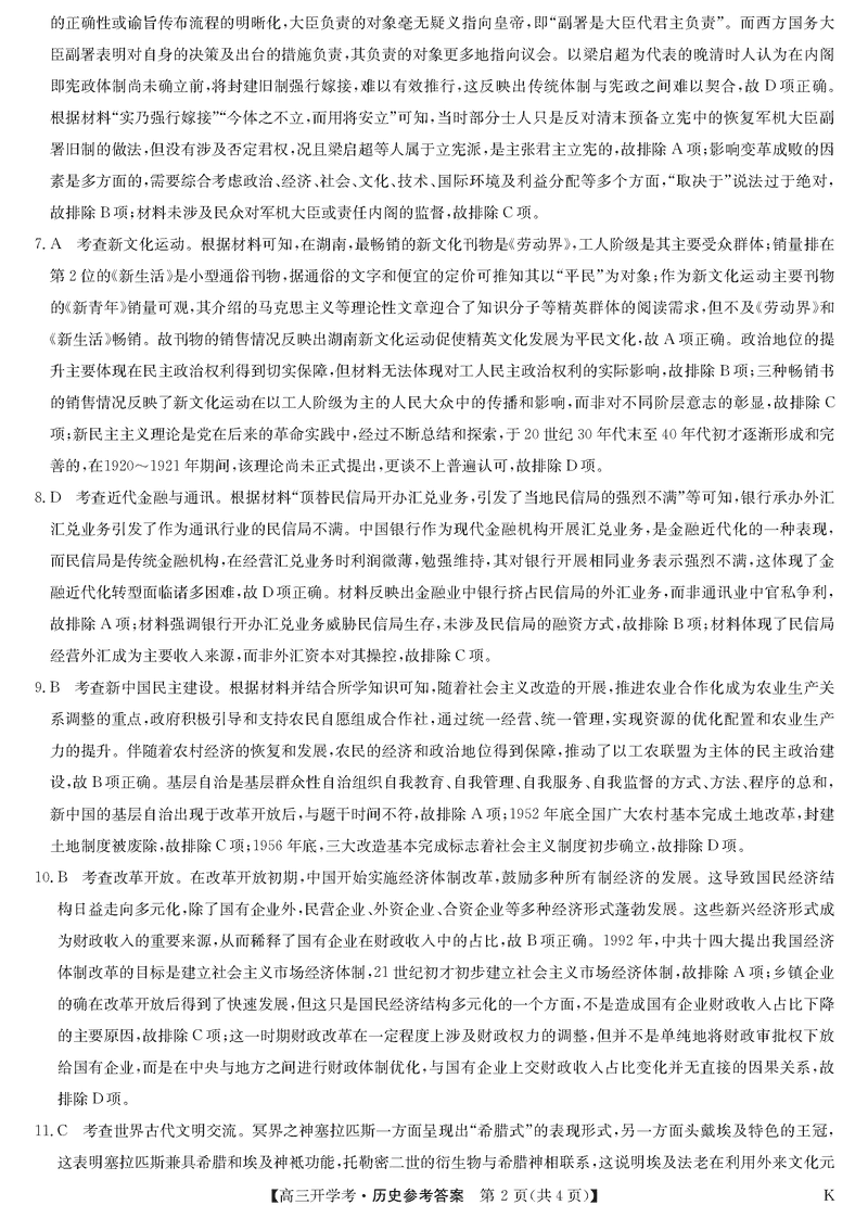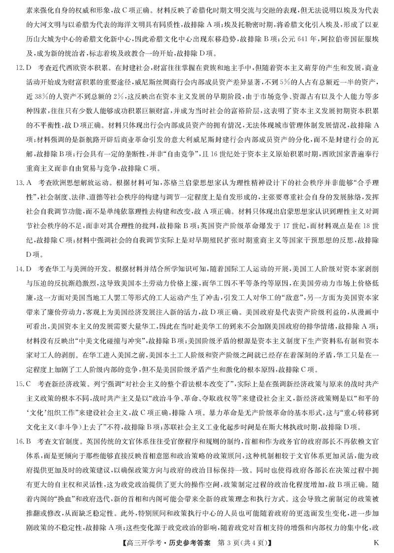 九师联盟2025届高三下学期2月开学考历史试题及答案