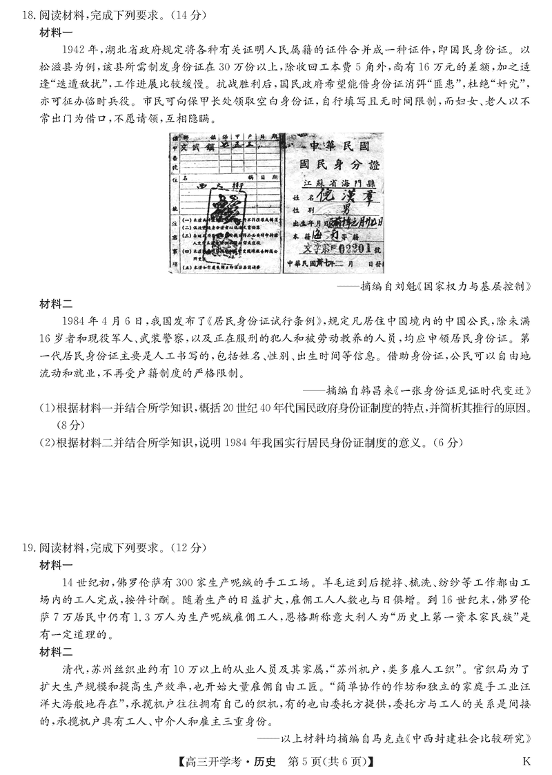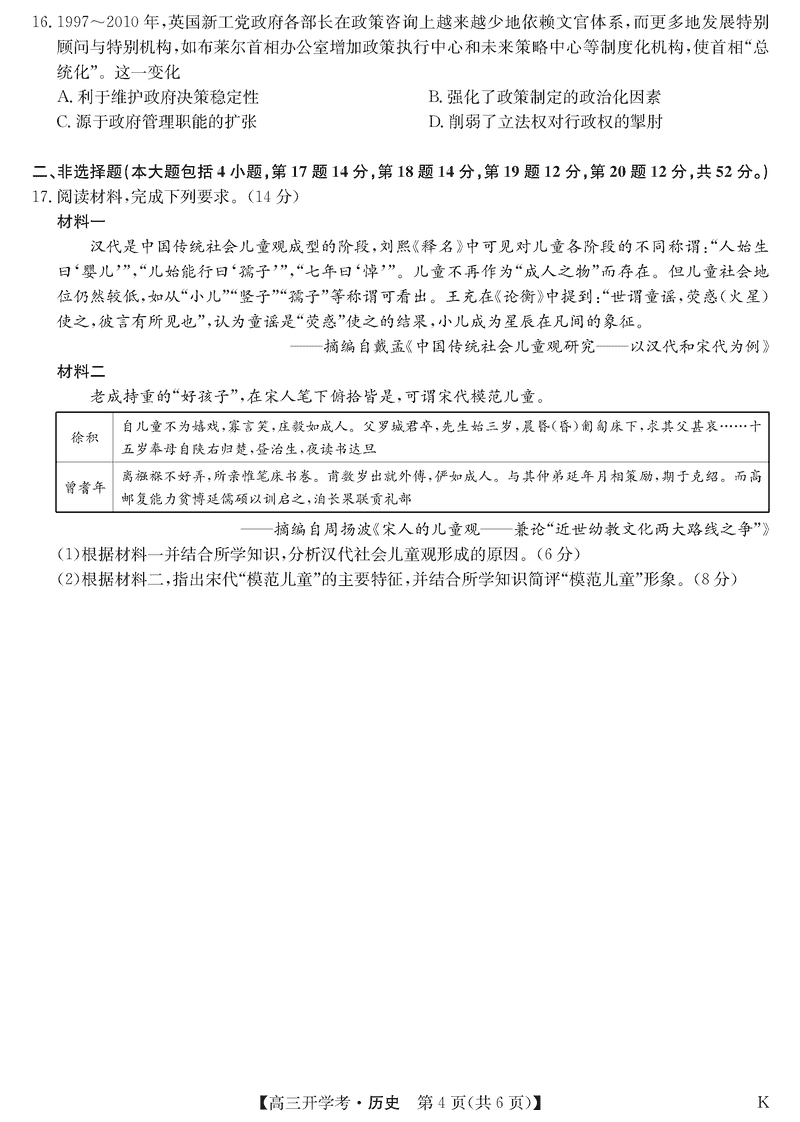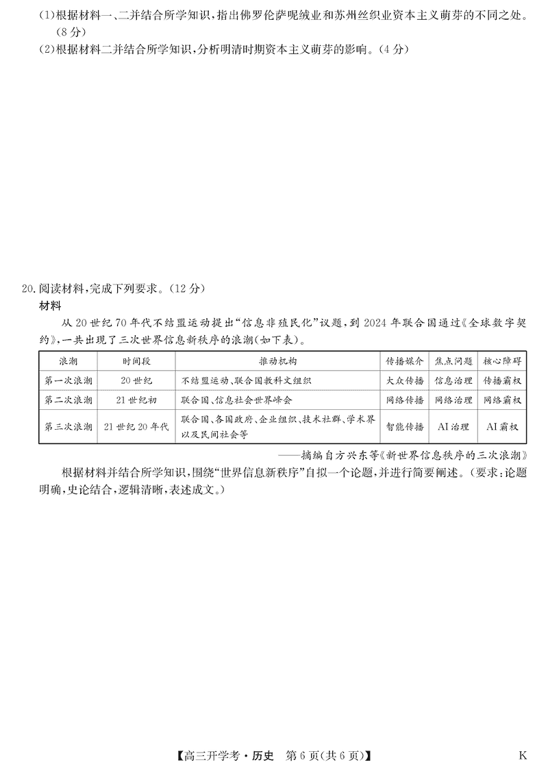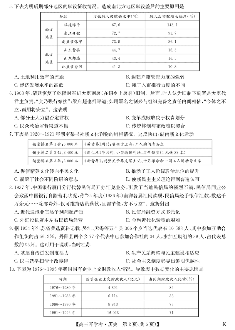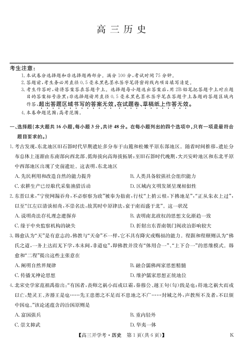 九师联盟2025届高三下学期2月开学考历史试题及答案