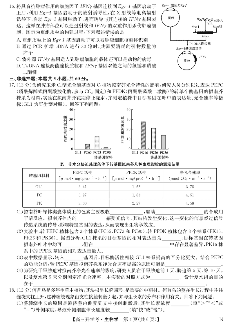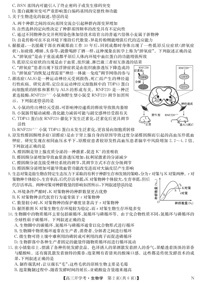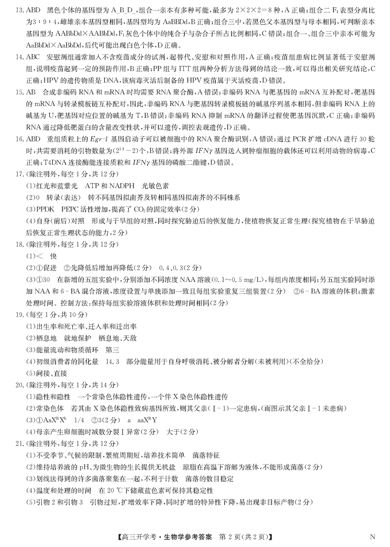 九师联盟2025届高三下学期2月开学考生物试题及答案