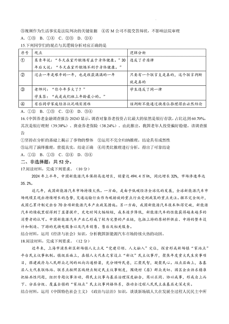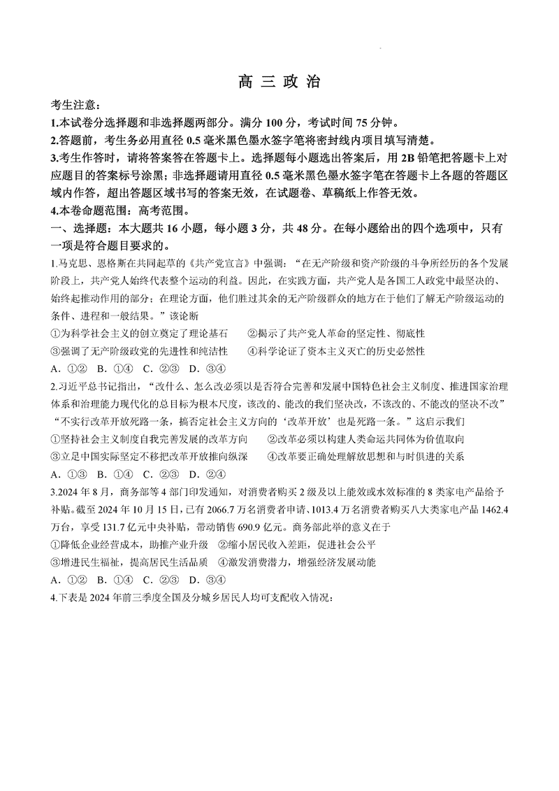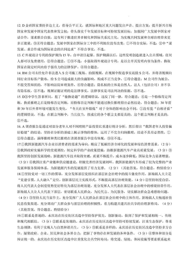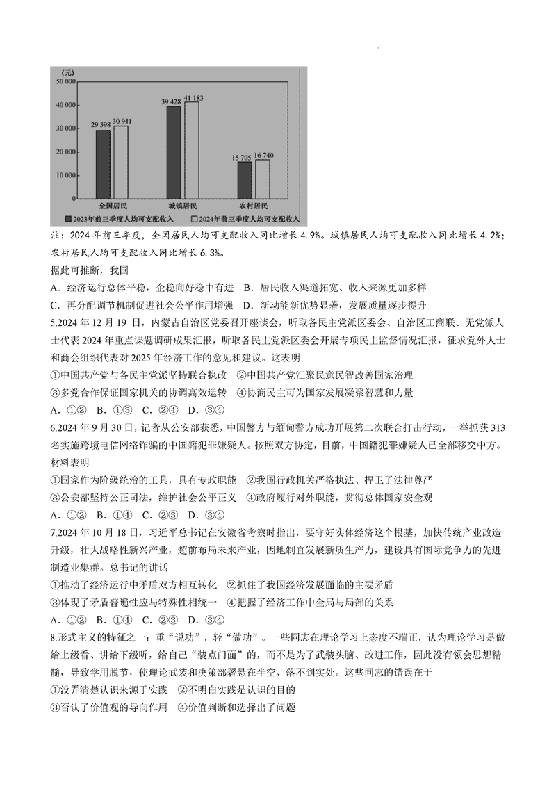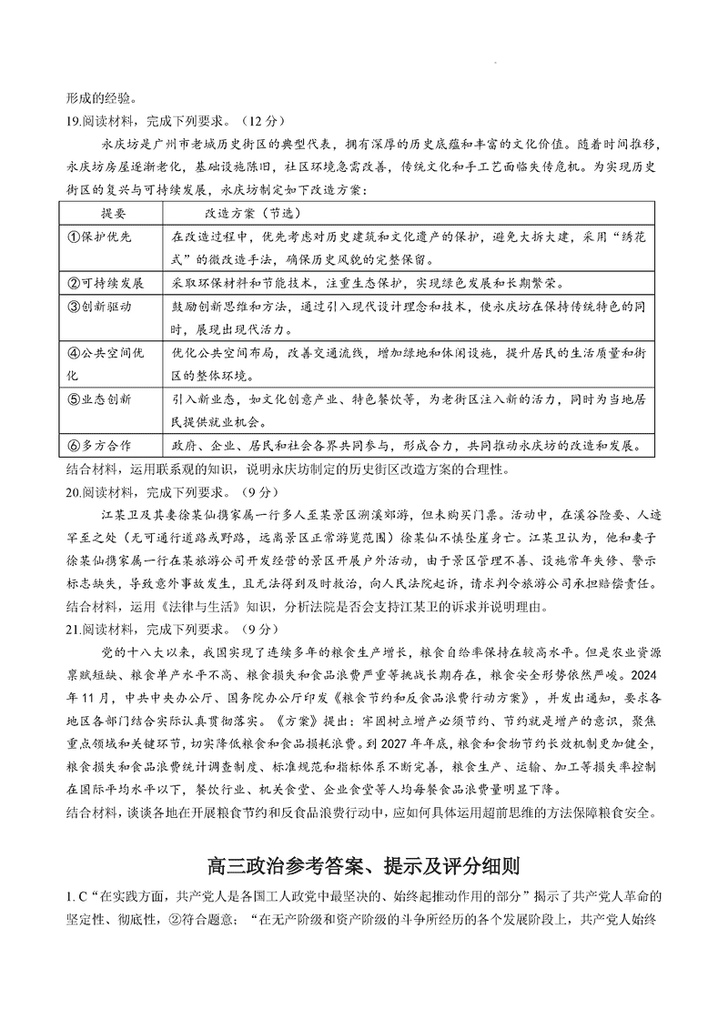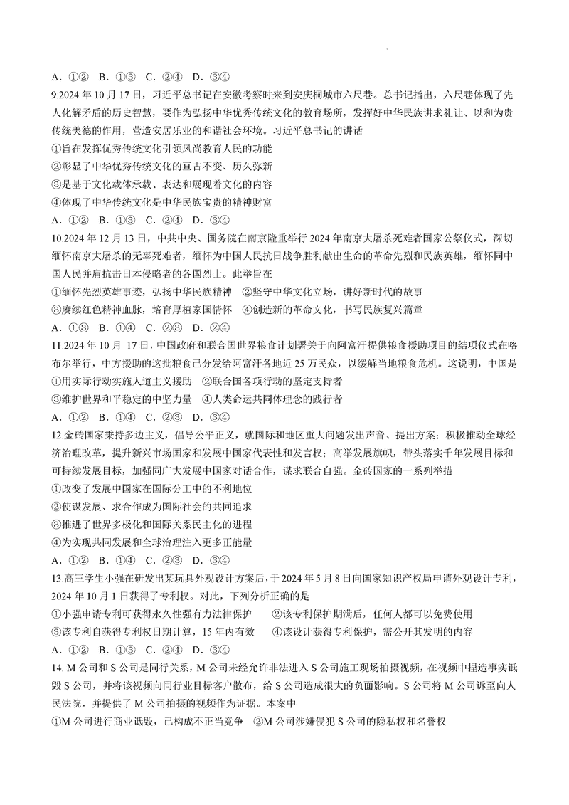 九师联盟2025届高三下学期2月开学考政治试题及答案