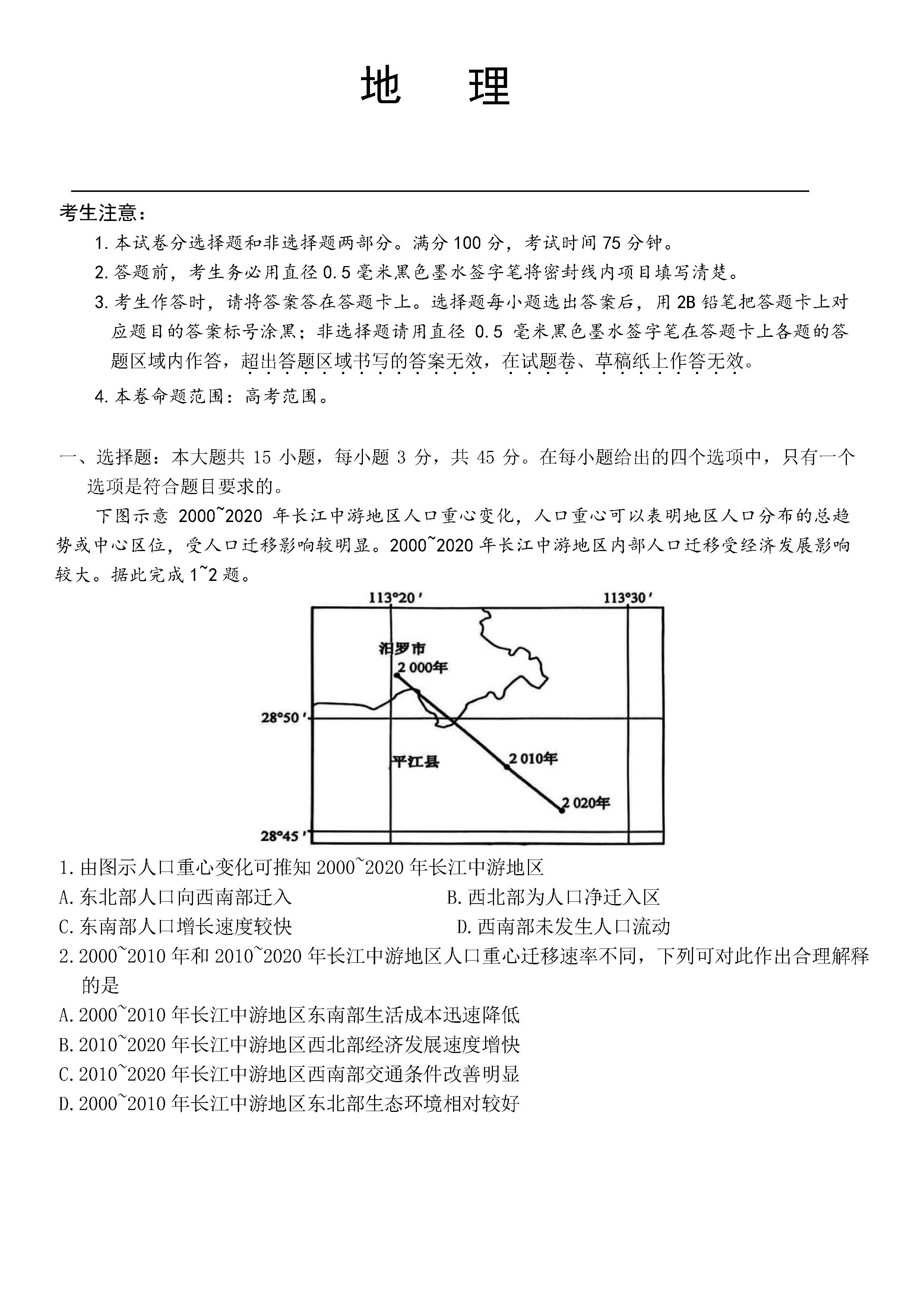 地理试题及答案解析