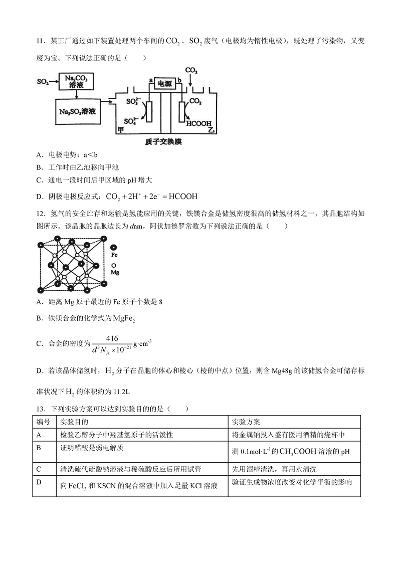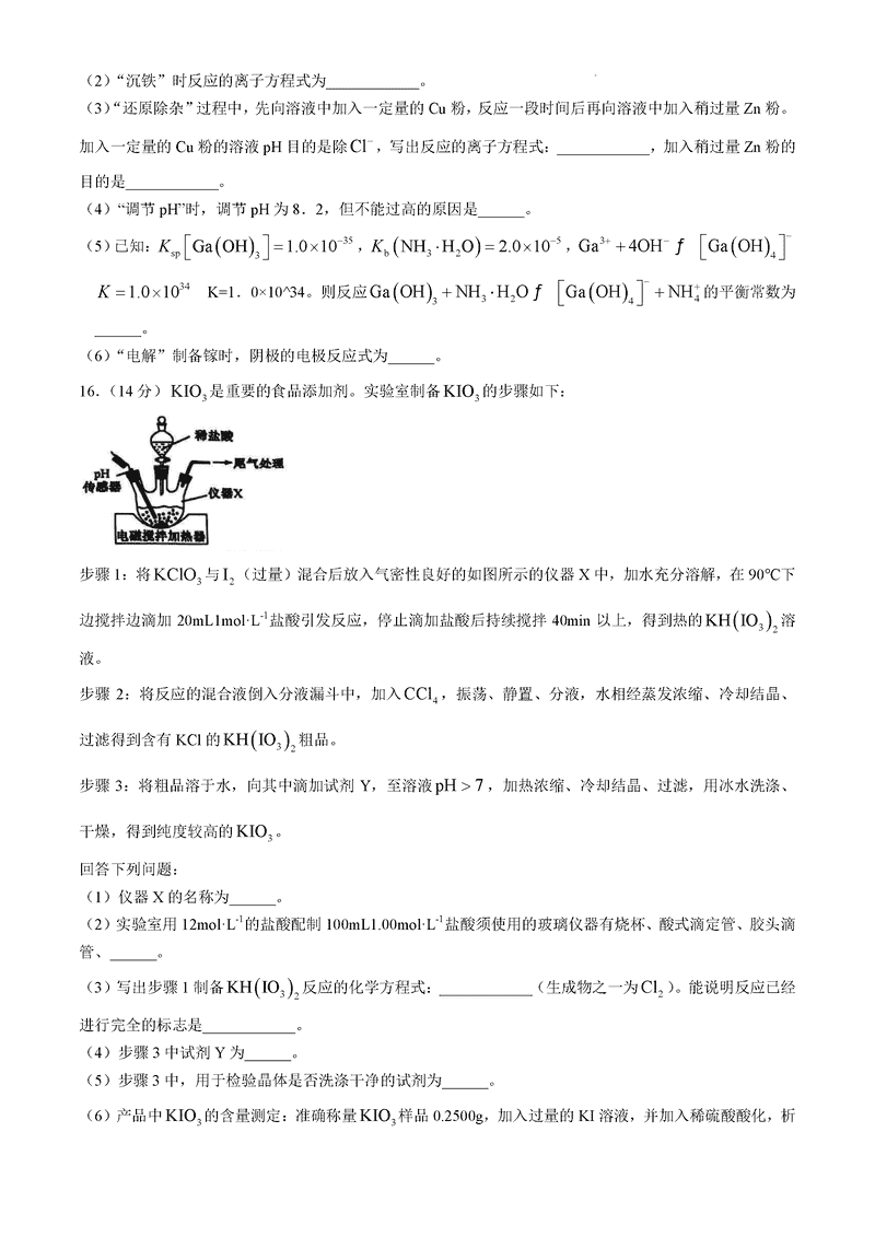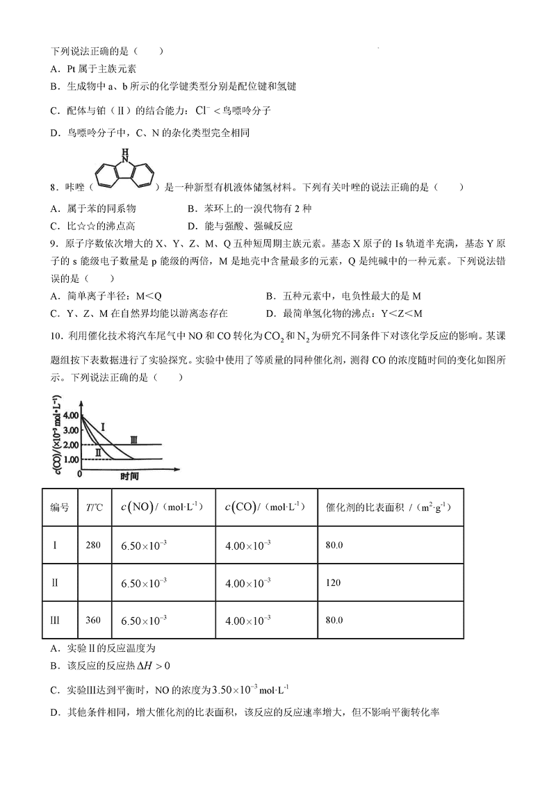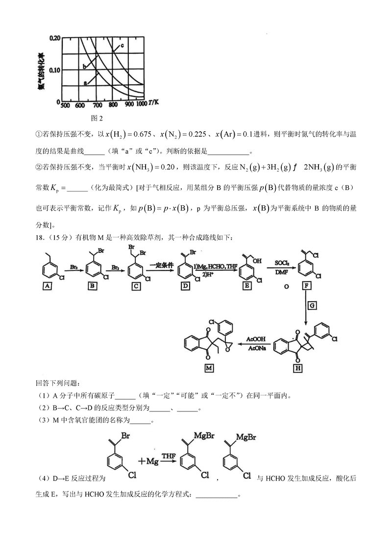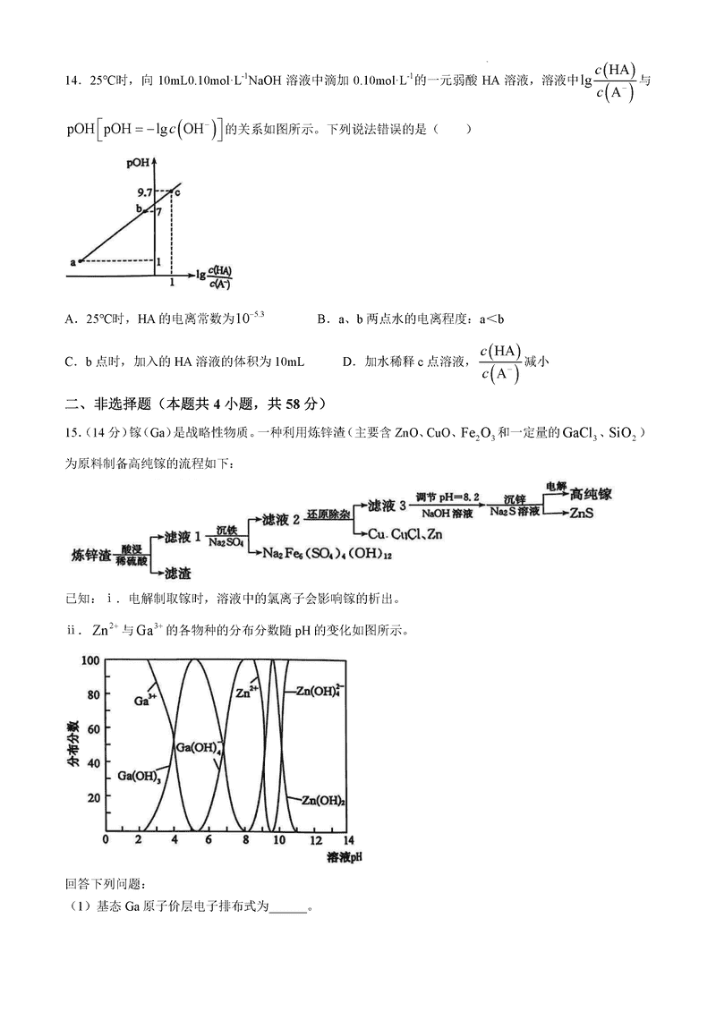 山西卓越联盟2025届高三下学期2月开学化学试题及答案