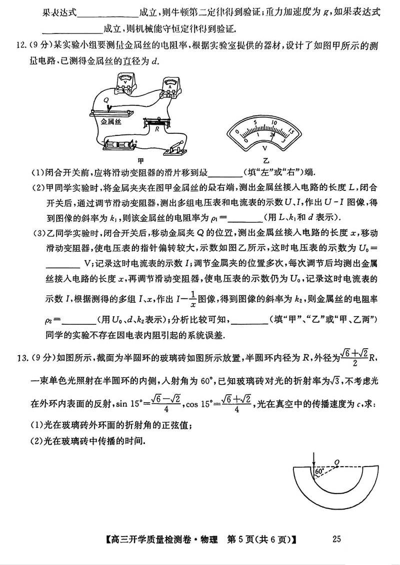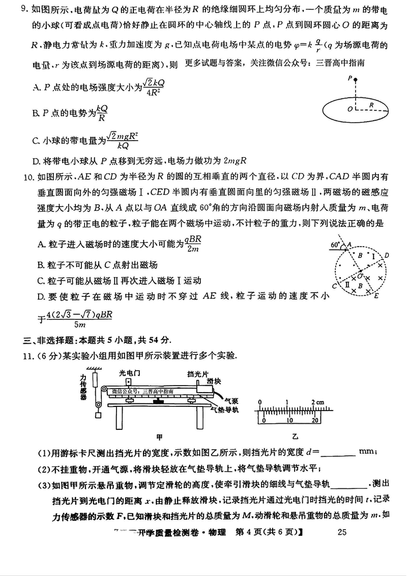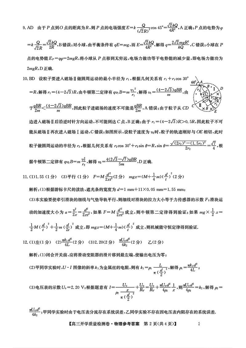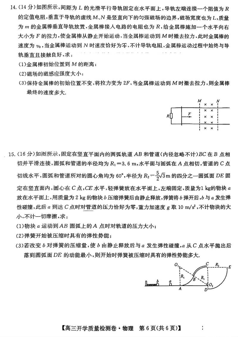 山西卓越联盟2025届高三下学期2月开学物理试题及答案