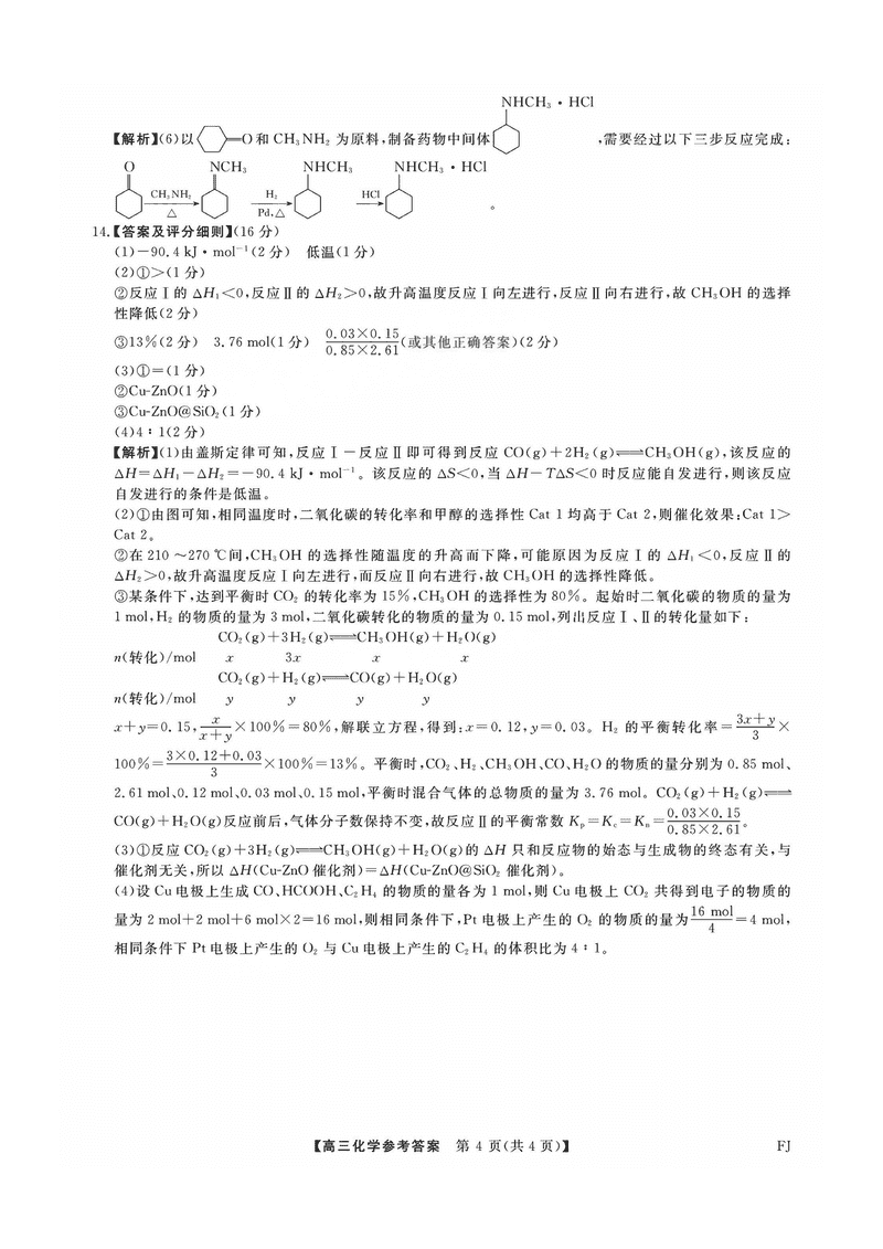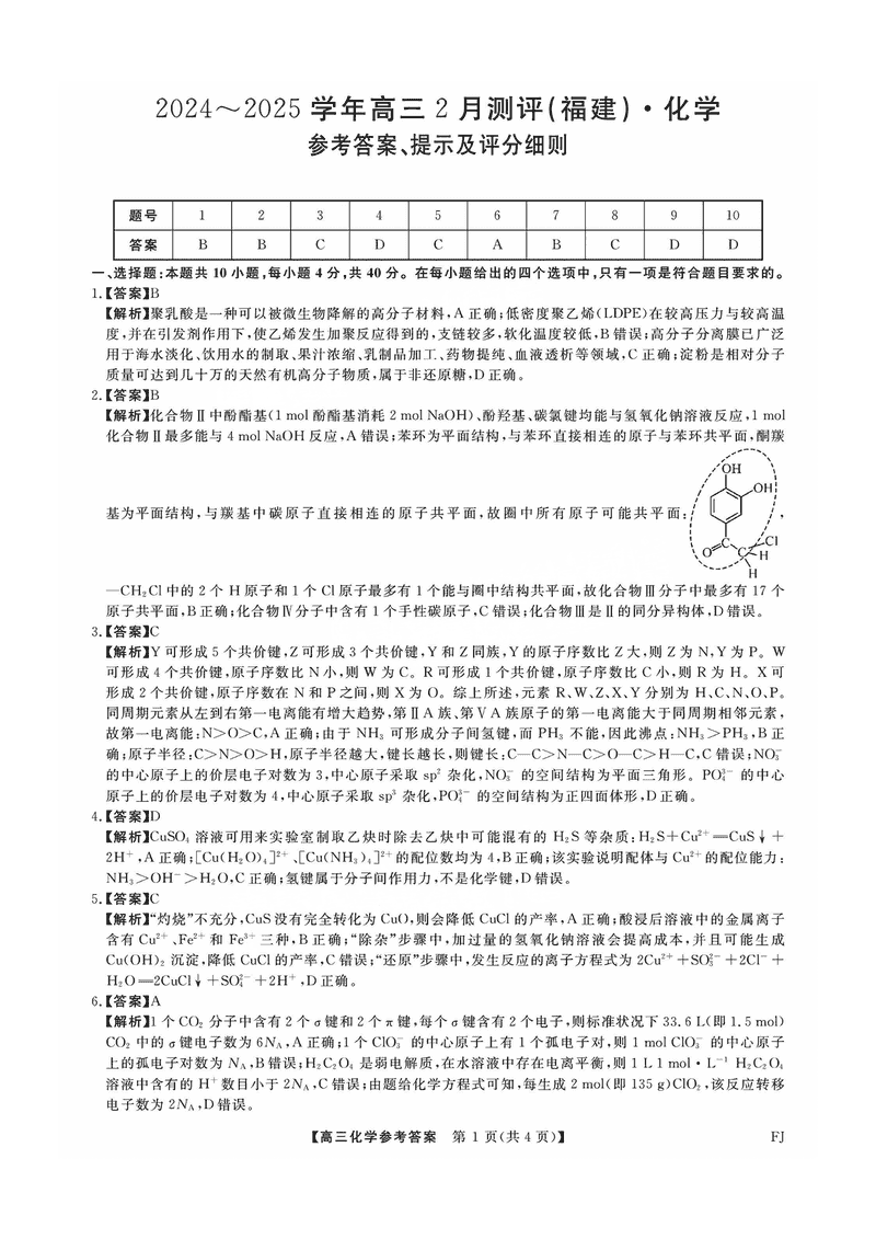 福建省金科大联考2025届高三2月开学联考化学试题及答案