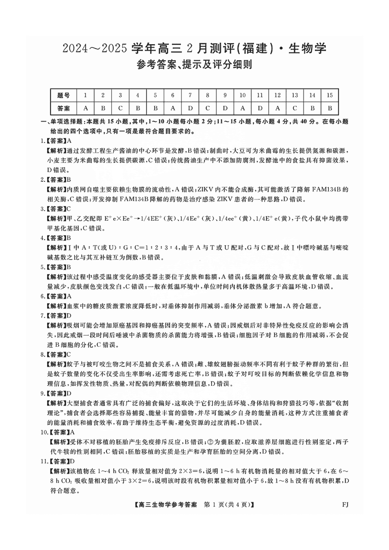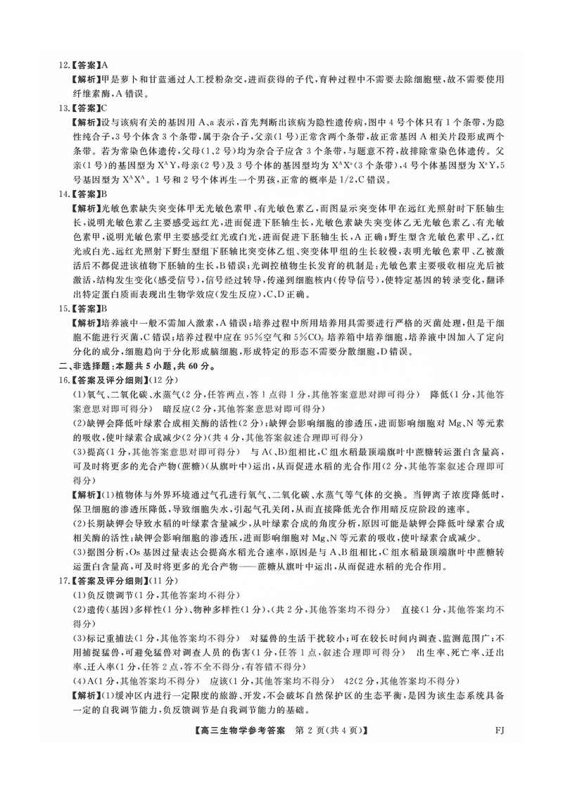 福建省金科大联考2025届高三2月开学联考生物考试已于近日开考,为方便考生考后及时查看考试情况,查漏补缺、弥补不足,本文整理了试题答案解析相关信息!