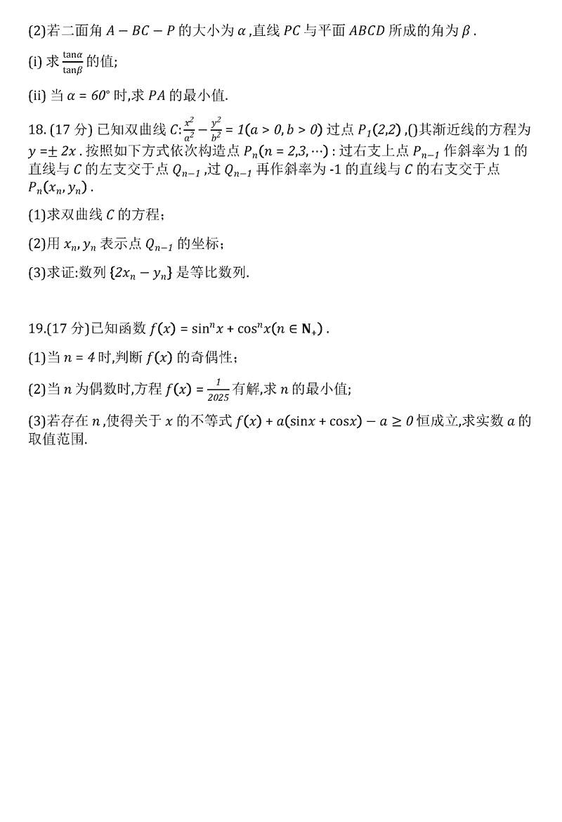 2025届浙江省温州市高三下学期学业水平评估数学试题及答案