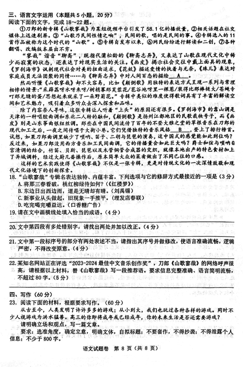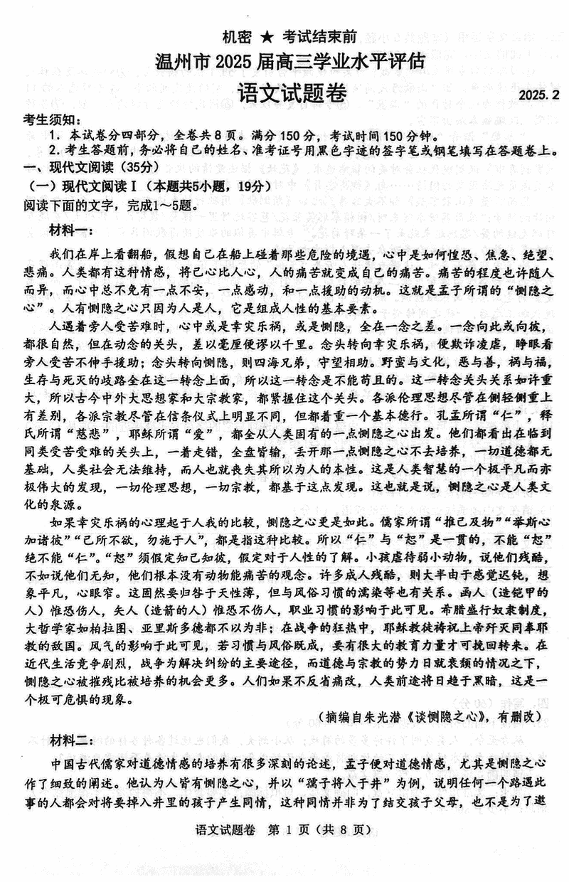 2025届浙江省温州市高三下学期学业水平评估语文考试已于近日开考,为方便考生考后及时查看考试情况,查漏补缺、弥补不足,本文整理了试题答案解析相关信息!