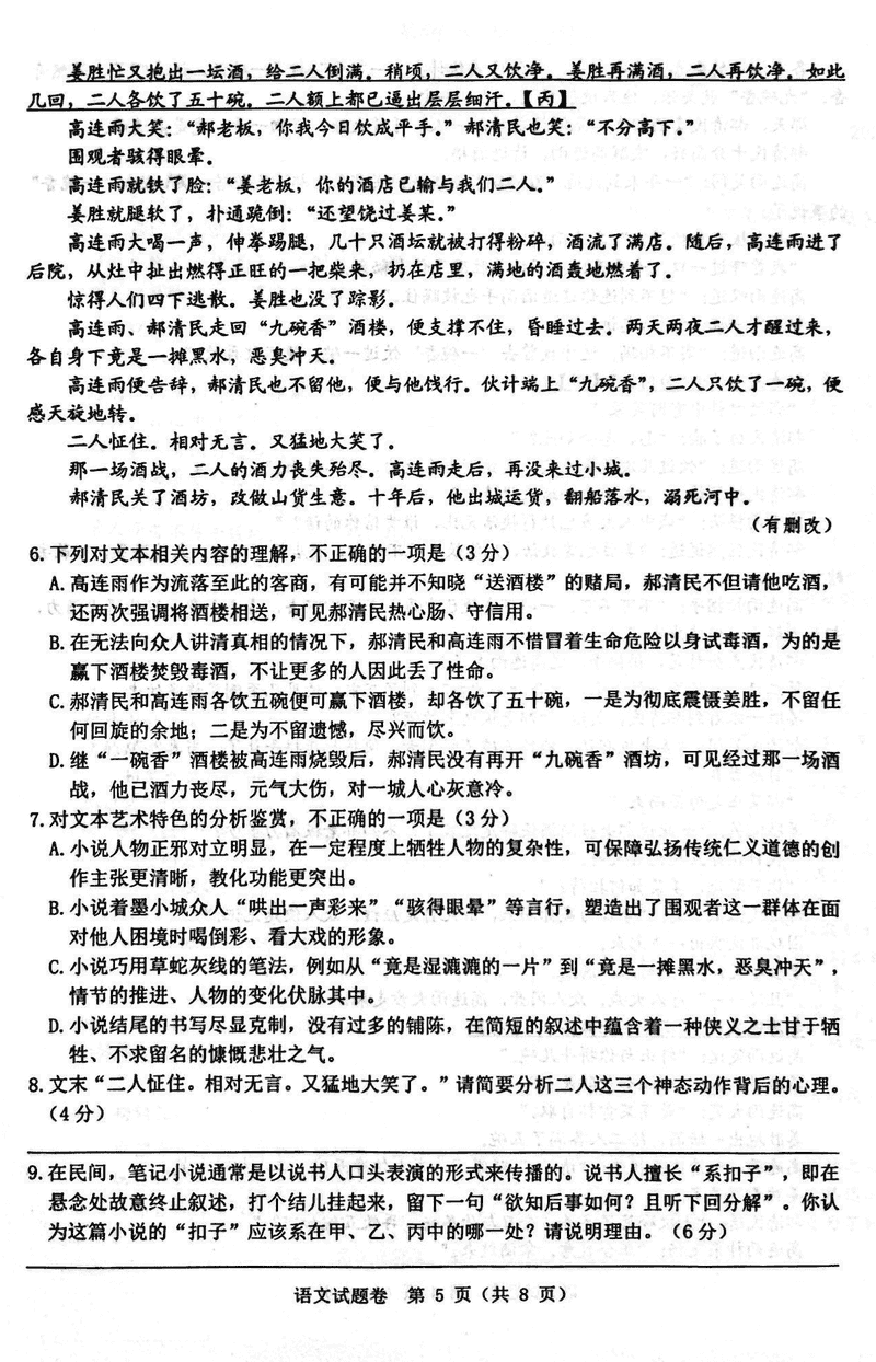 2025届浙江省温州市高三下学期学业水平评估语文试题及答案
