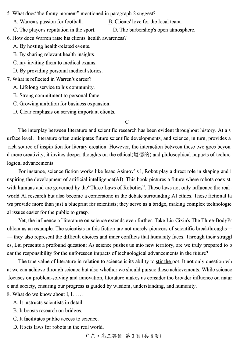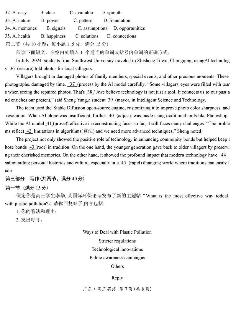 广东省领航高中联盟2025届高三下学期2月开学考英语试题及答案