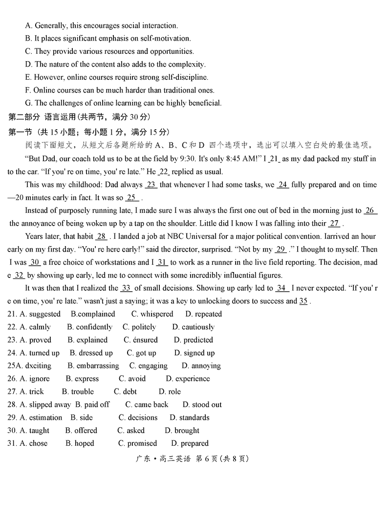 广东省领航高中联盟2025届高三下学期2月开学考英语考试已于近日开考,为方便考生考后及时查看考试情况,查漏补缺、弥补不足,本文整理了试题答案解析相关信息!