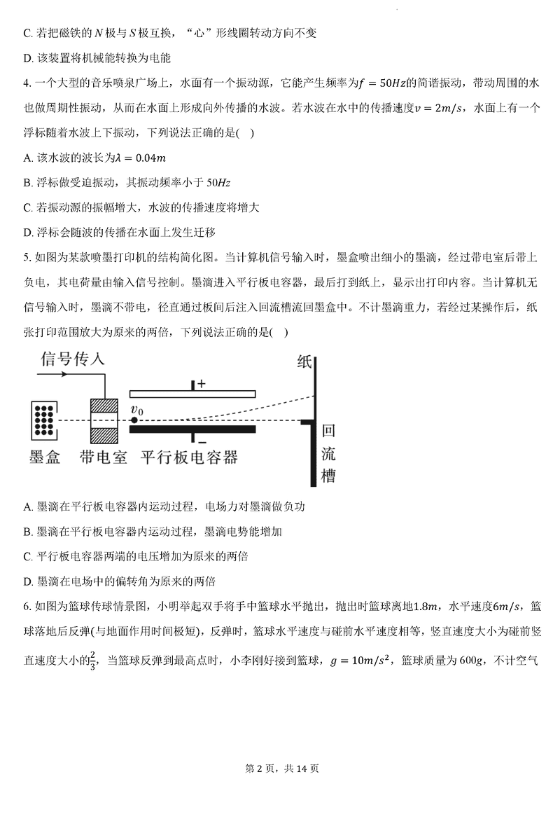 广东省领航高中联盟2025届高三下学期2月开学考物理试题及答案