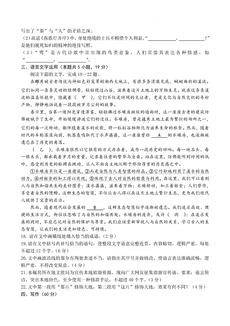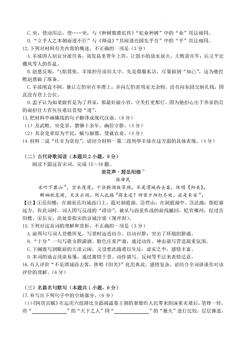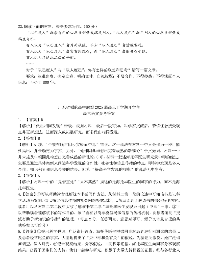 广东省领航高中联盟2025届高三下学期2月开学考语文试题及答案