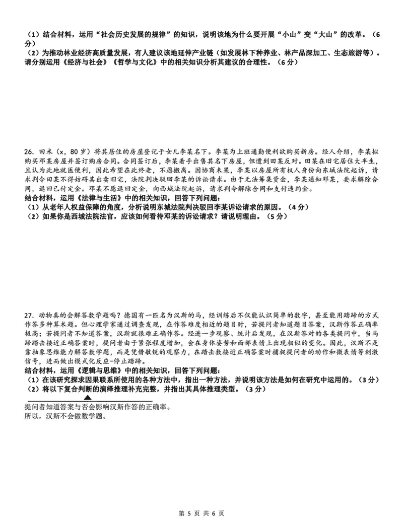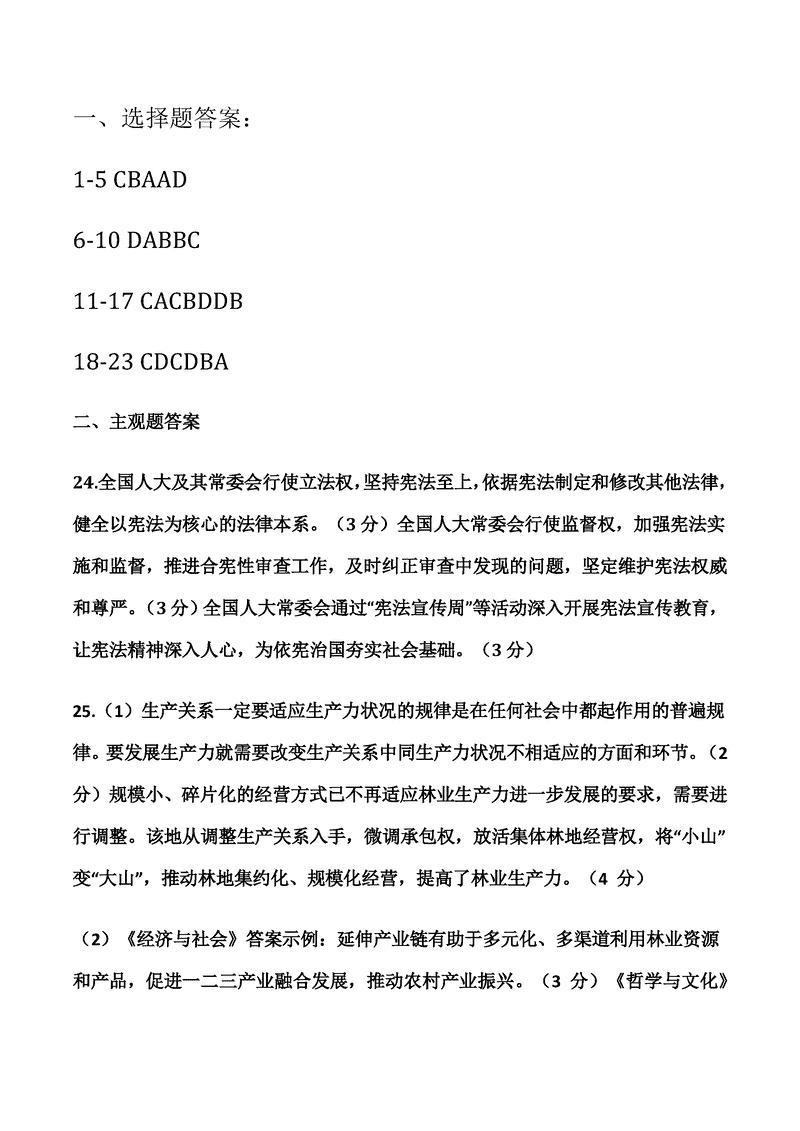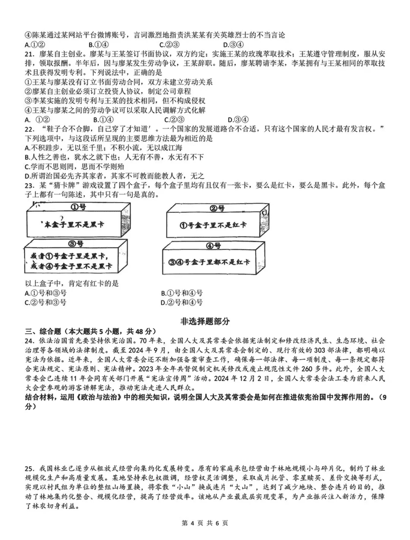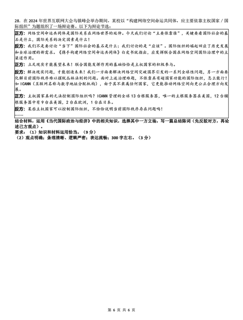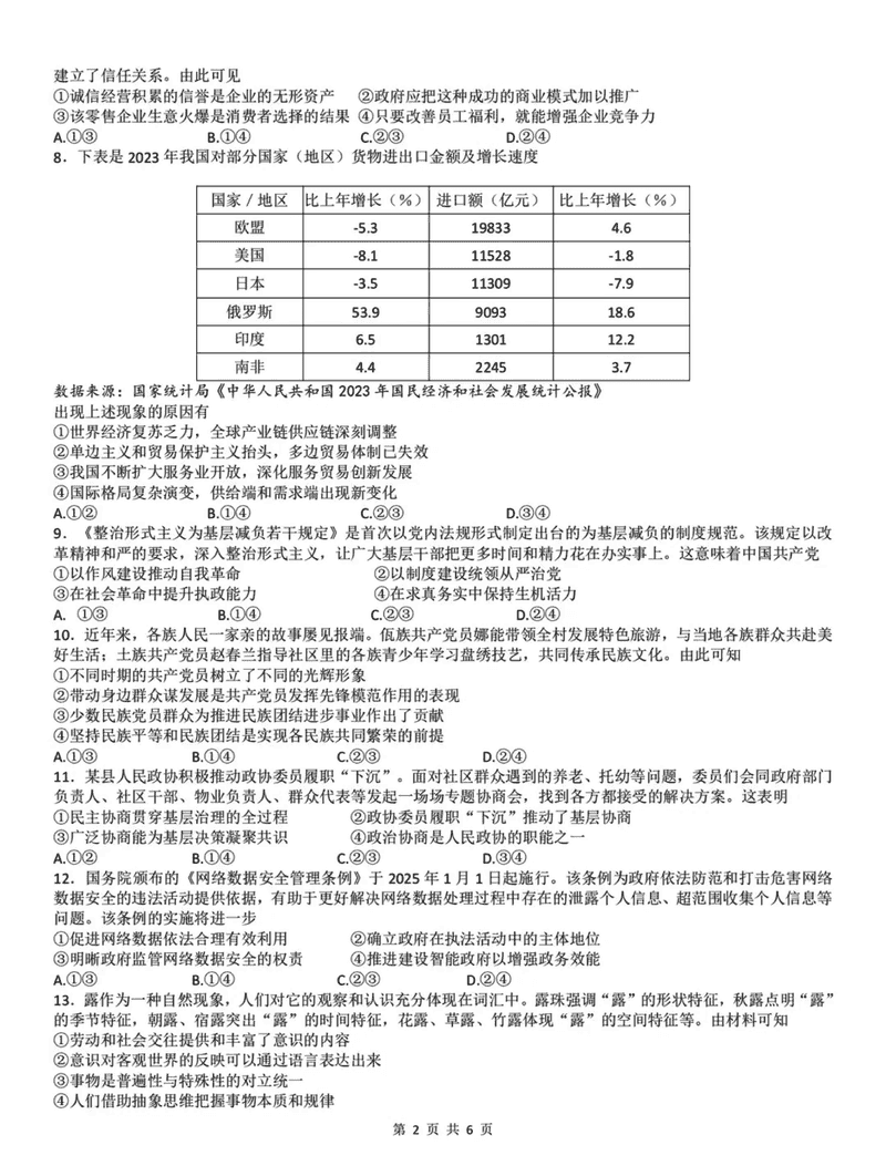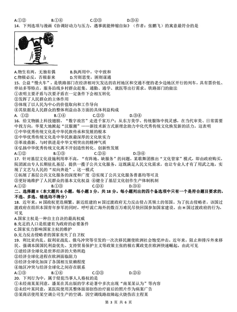 浙江首考2025年1月普通高等学校招生全国统考政治试题及答案