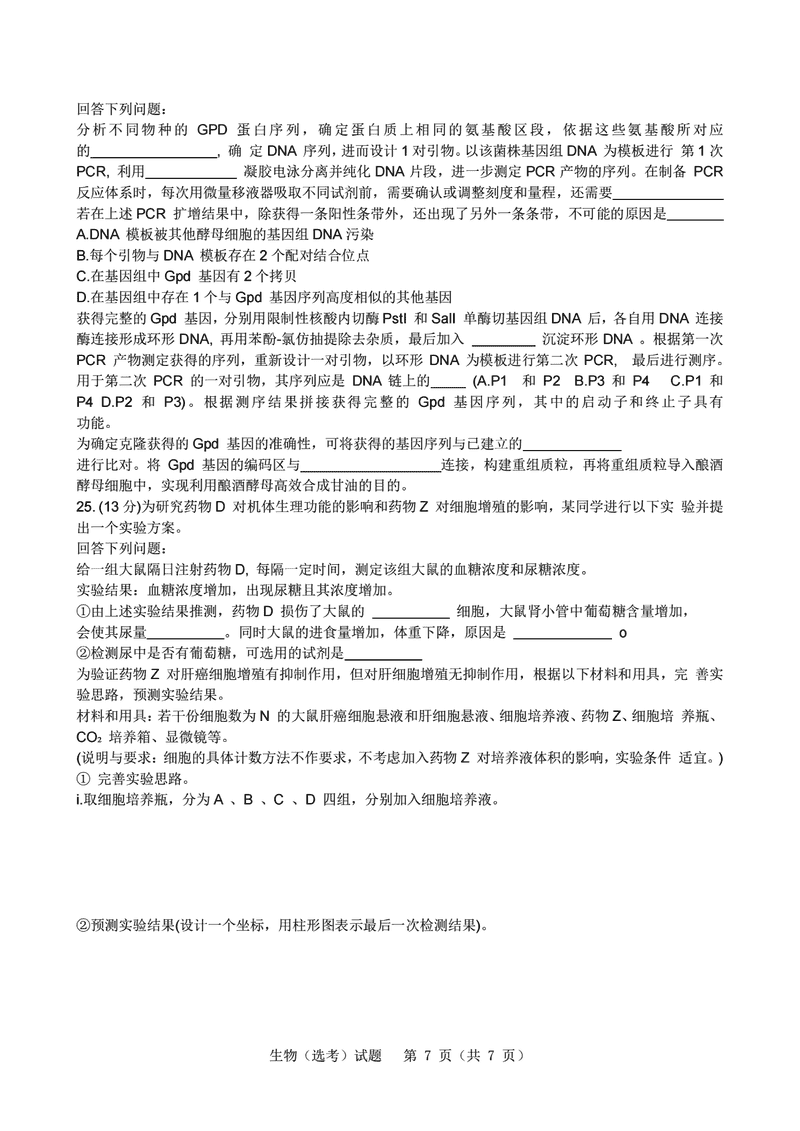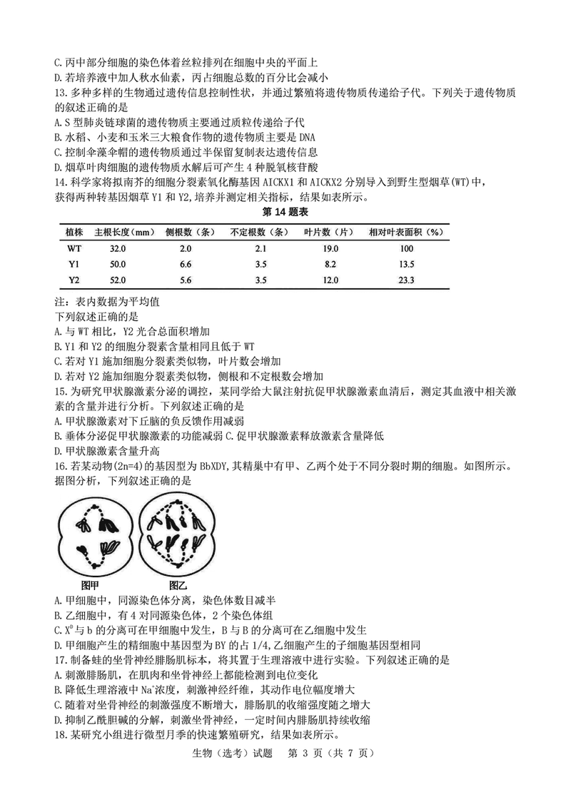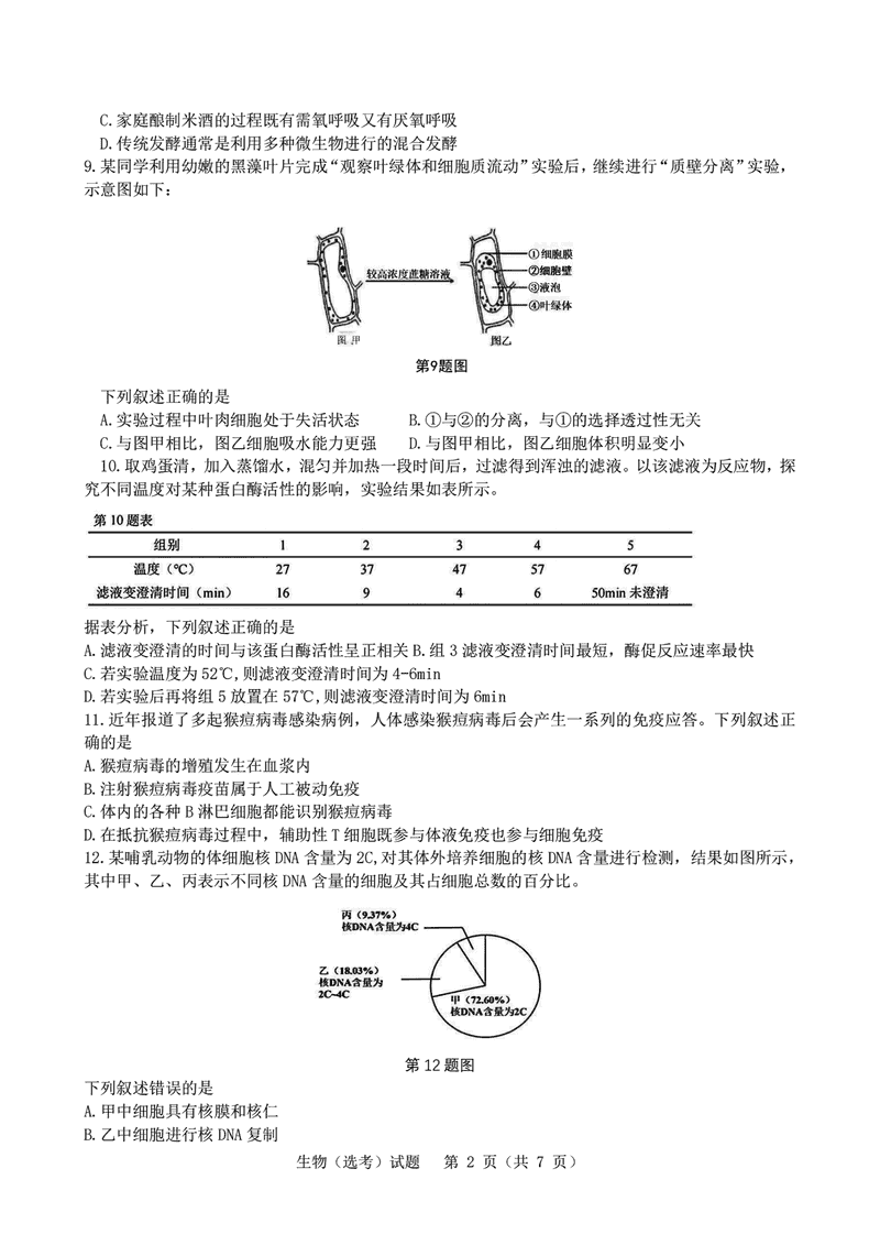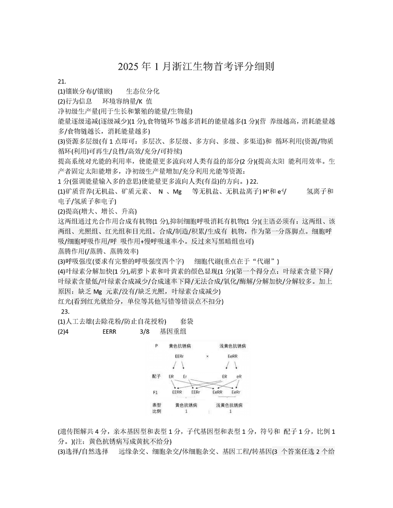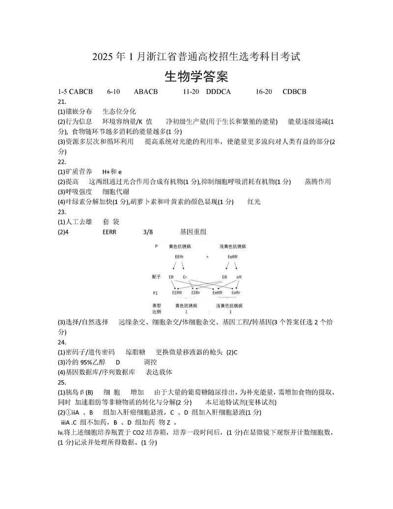浙江首考2025年1月普通高等学校招生全国统考生物试题及答案