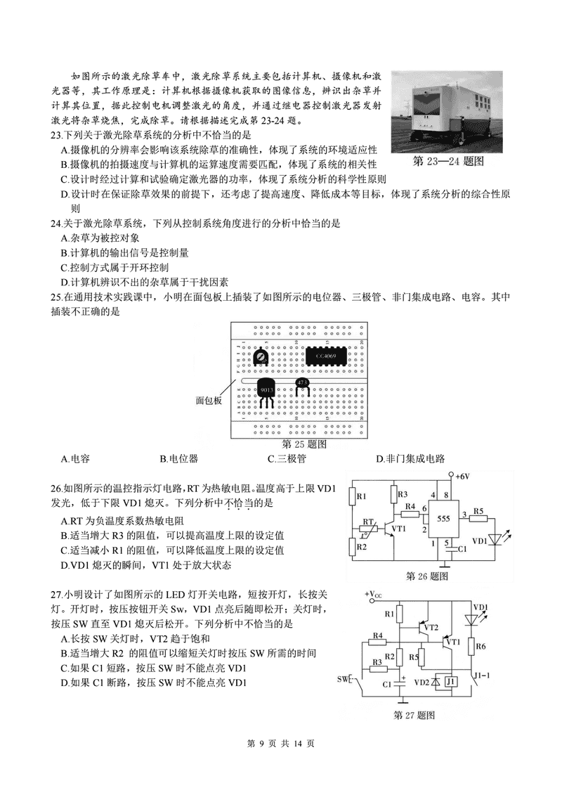 浙江首考2025年1月普通高等学校招生全国统考技术试题及答案