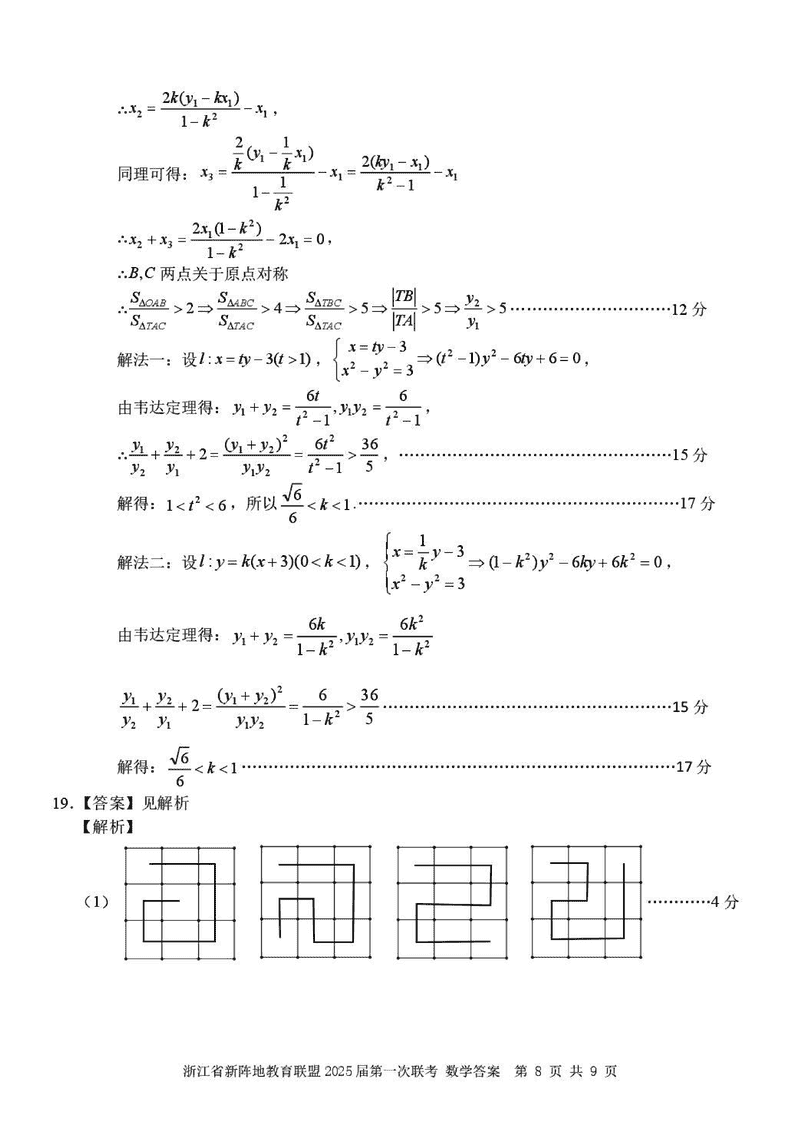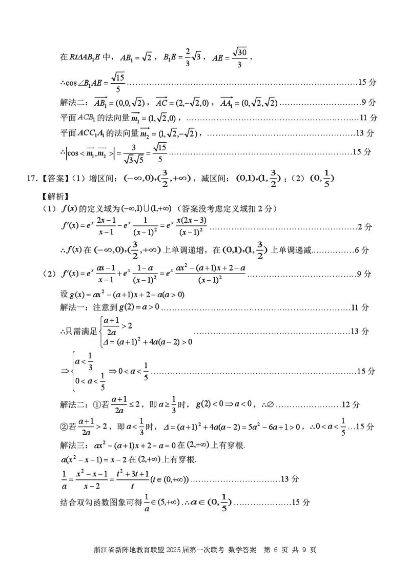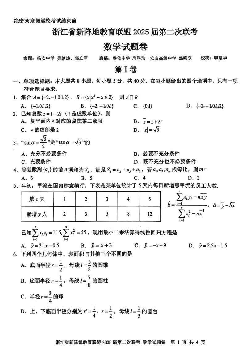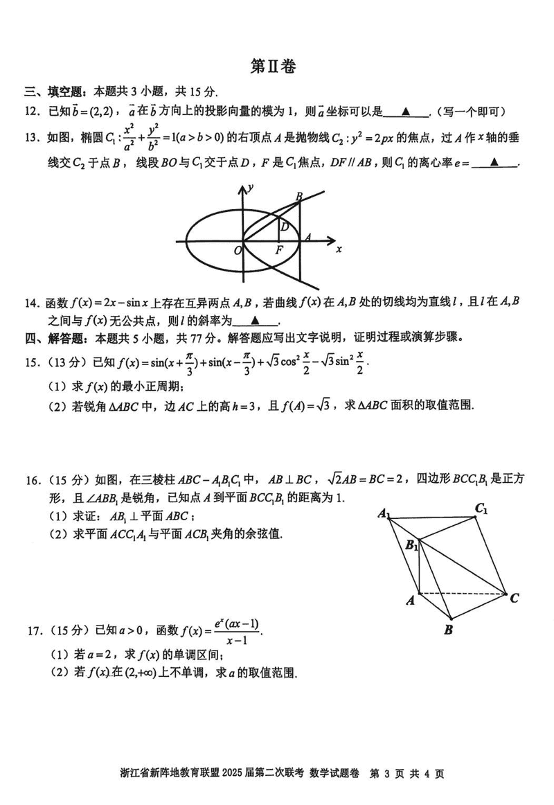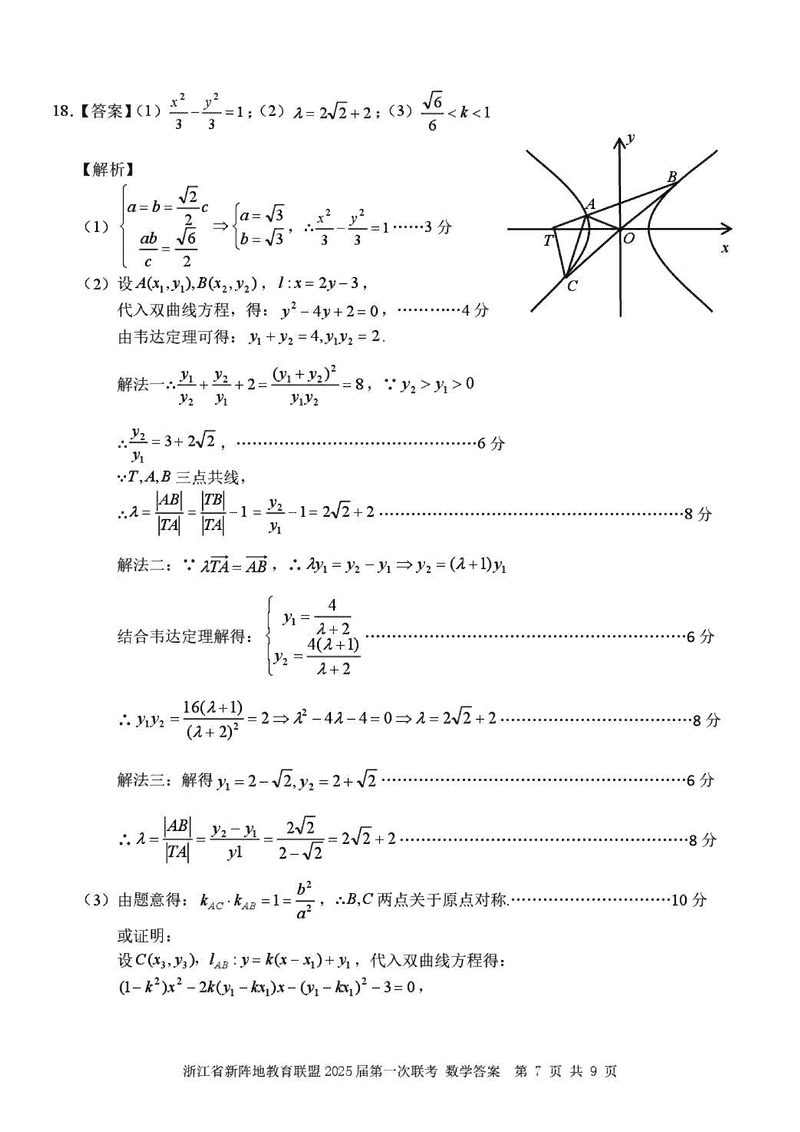 浙江新阵地教育联盟2025届高三2月联考数学试题及答案